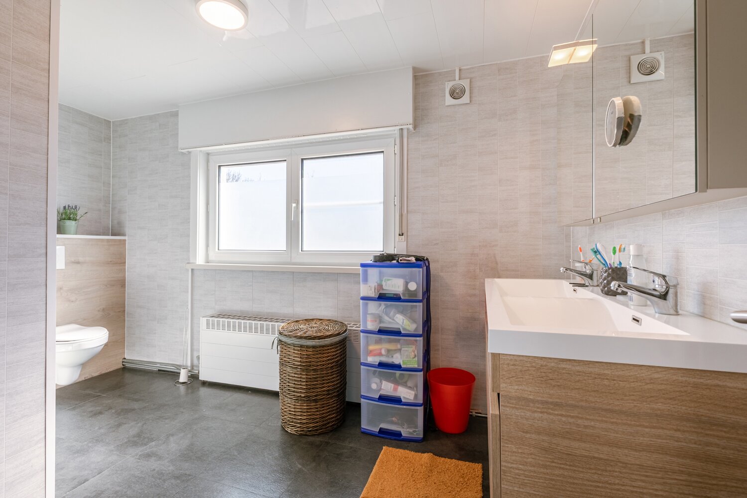 Op de eerste verdieping bevinden er zich drie slaapkamers en badkamer met dubbel lavabomeubel en inloopdouche.