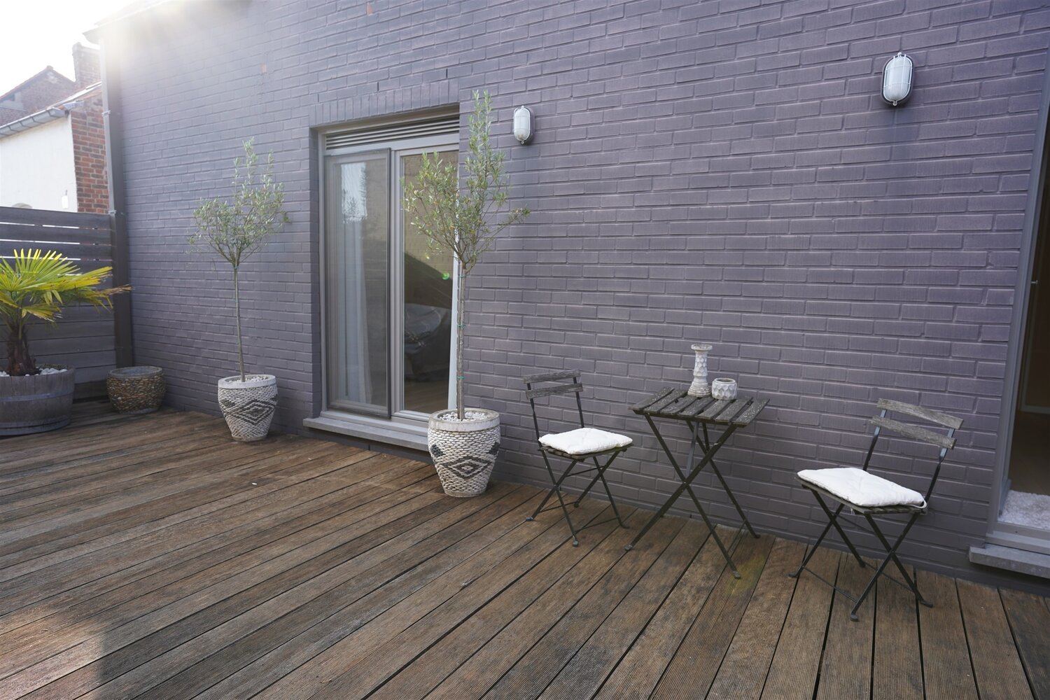 City Chic appartement met groot droomterras – Alles Tiptop in Orde - jouw stadsnest in stijl! Gelegen op de eerste verdieping, pal in de buurt van het geliefde Sint-Elisabeth – waar stad en rust elkaar ontmoeten. Maar wacht even… het echte paradepaardje? Een machtig terras van maar liefst 40 m², zuidwest georiënteerd. Denk: zon, gezelligheid, en apero vibes... Indeling in stijl: Een nette inkomhal met gastentoilet – Stap verder in de warme, intieme living waar sfeer geen keuze is, maar een garantie. Perfect voor gezellige avonden of Netflix-marathons. - Doordacht ingerichte keuken voorzien van slimme opbergkasten en toestellen - Twee fantastische kamers, elk met rechtstreeks toegang tot dat heerlijke terras - Mooie en eigentijdse badkamer: fris en praktisch ingericht met een ruime glazen douche waar je met gemak je ochtendstress afspoelt - aparte wasplaats, want praktisch wonen = relaxed wonen. Kleinschalige residentie met 2 medebewoners!