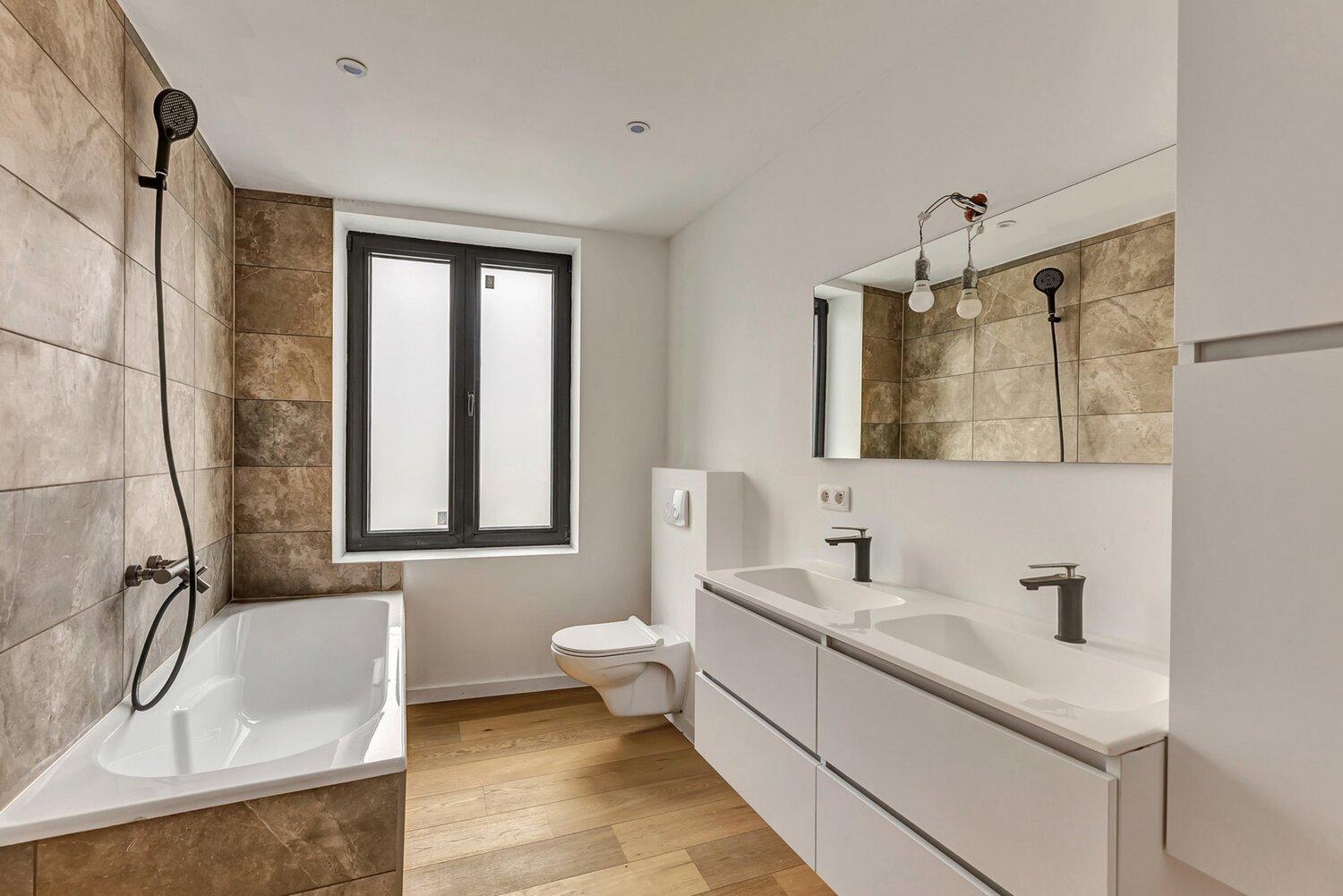 Voor meer info of een bezoek, bel 054 69 39 39 - Deze volledig vernieuwde stadswoning (kwalitatieve A-tot-Z-renovatie in 2024) biedt een bewoonbare oppervlakte van maar liefst 200 m² en telt vijf ruime slaapkamers. De woning onderscheidt zich door de keuze voor hoogwaardige materialen, zoals massief parket, grote tegels van 60x120 cm, een volledig ingerichte kwaliteitskeuken en twee stijlvolle badkamers – slechts enkele van de vele troeven die dit pand te bieden heeft. De woning bevindt zich op een strategische ligging tussen de markt en het stadscentrum. Dankzij de centrale ligging en de hoogwaardige afwerking is dit een unieke parel die je niet mag laten liggen. Ideaal voor grote gezinnen of voor wie graag over extra kamers beschikt voor een zelfstandige activiteit of thuiskantoor. In de fraai aangelegde binnenkoer is het bovendien heerlijk vertoeven tijdens de zomermaanden. EPC B - Elektrische installatie conform - Asbestvrij - Instapklaar