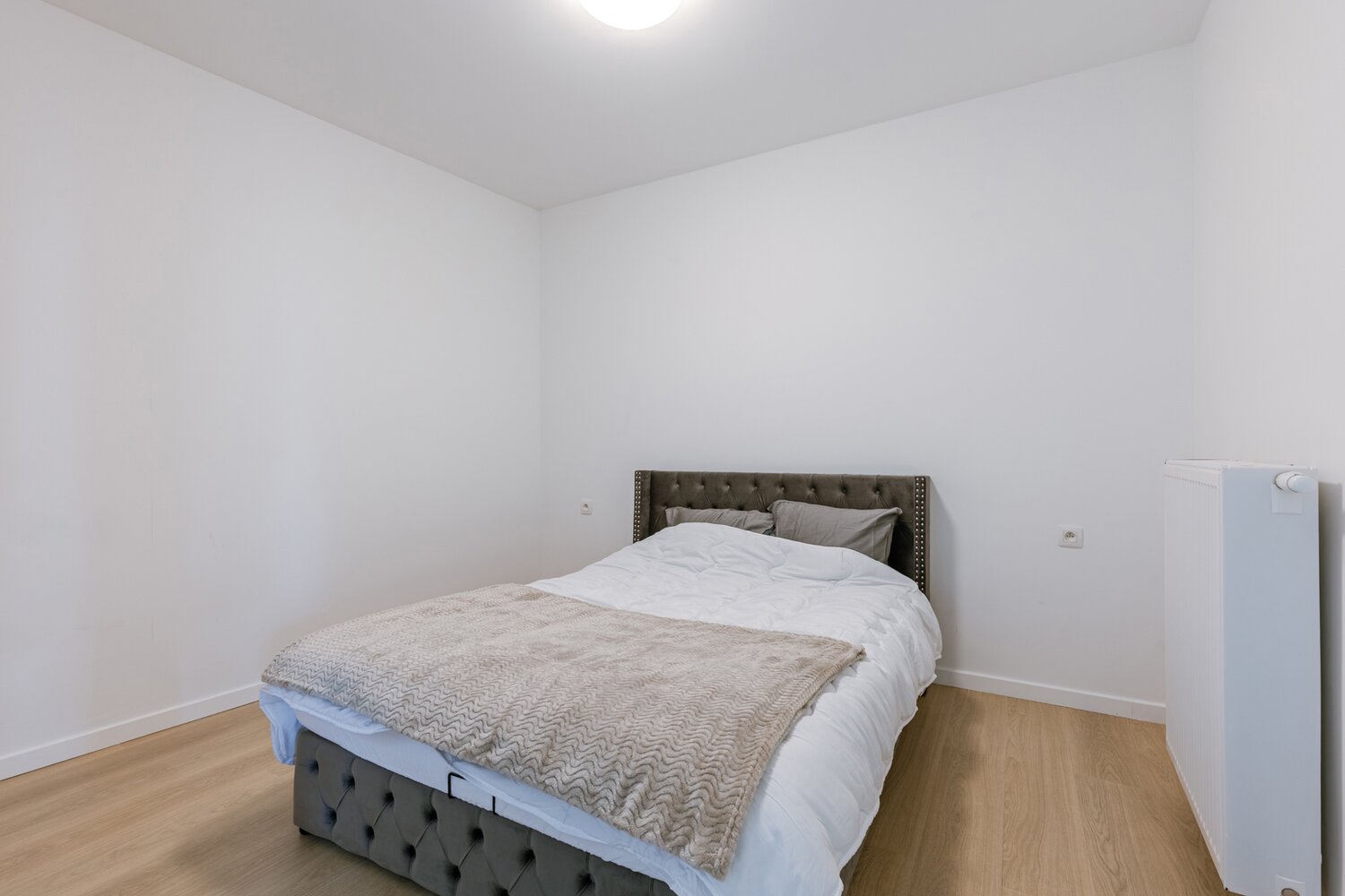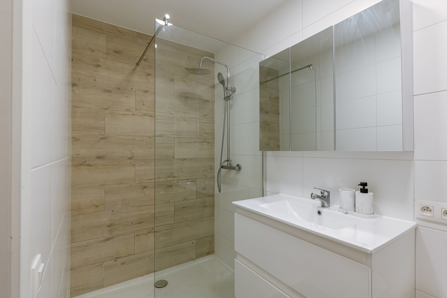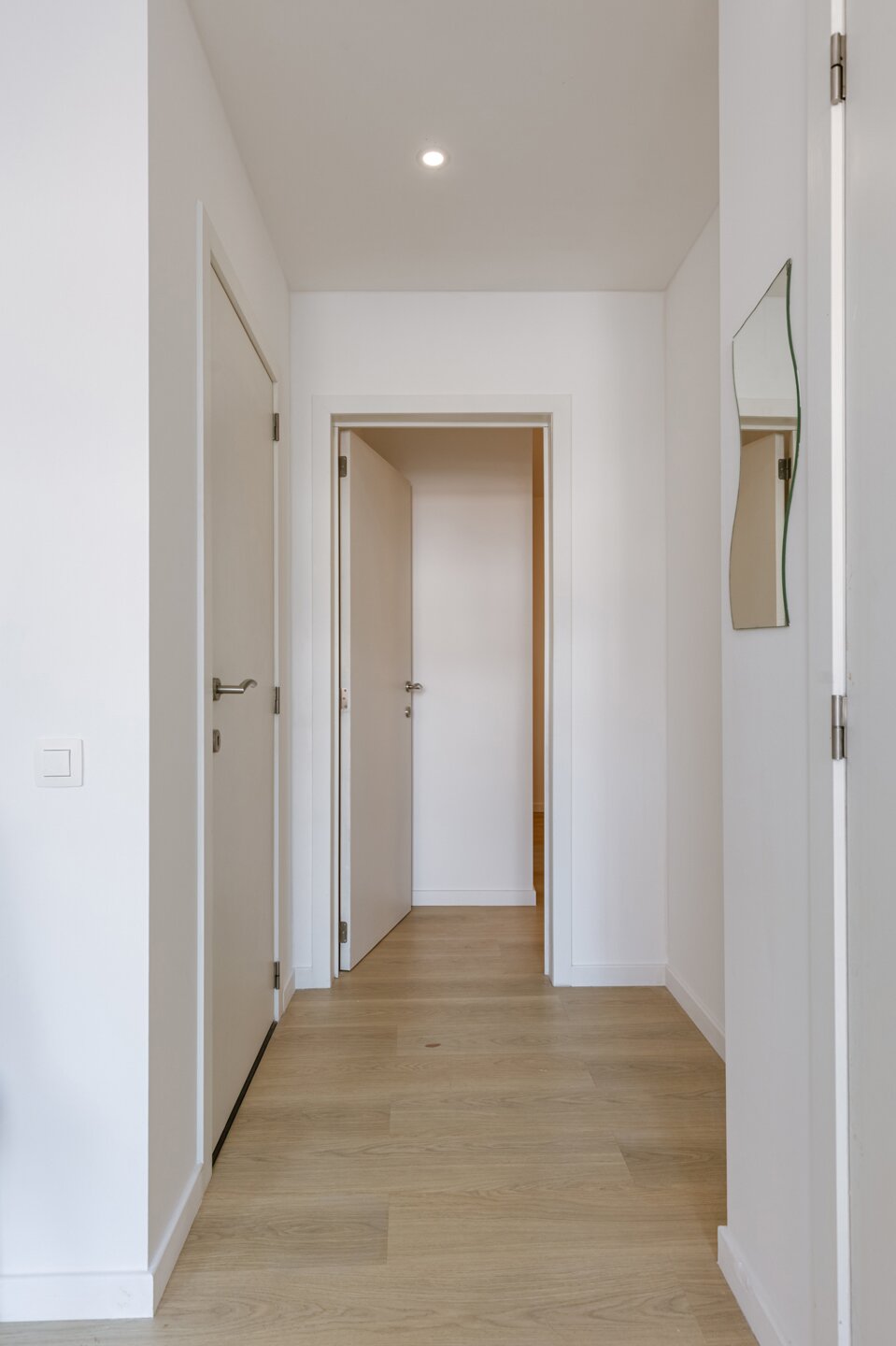 Bij binnenkomst wordt je verwelkomd in de ruime inkomhal die toegang biedt tot de moderne leefruimte met aansluitend een eetplaats en open keuken. Doorlopend vind je de slaapkamer en een badkamer met douche. Verder is er een apart toilet en extra opbergruimte voorzien.