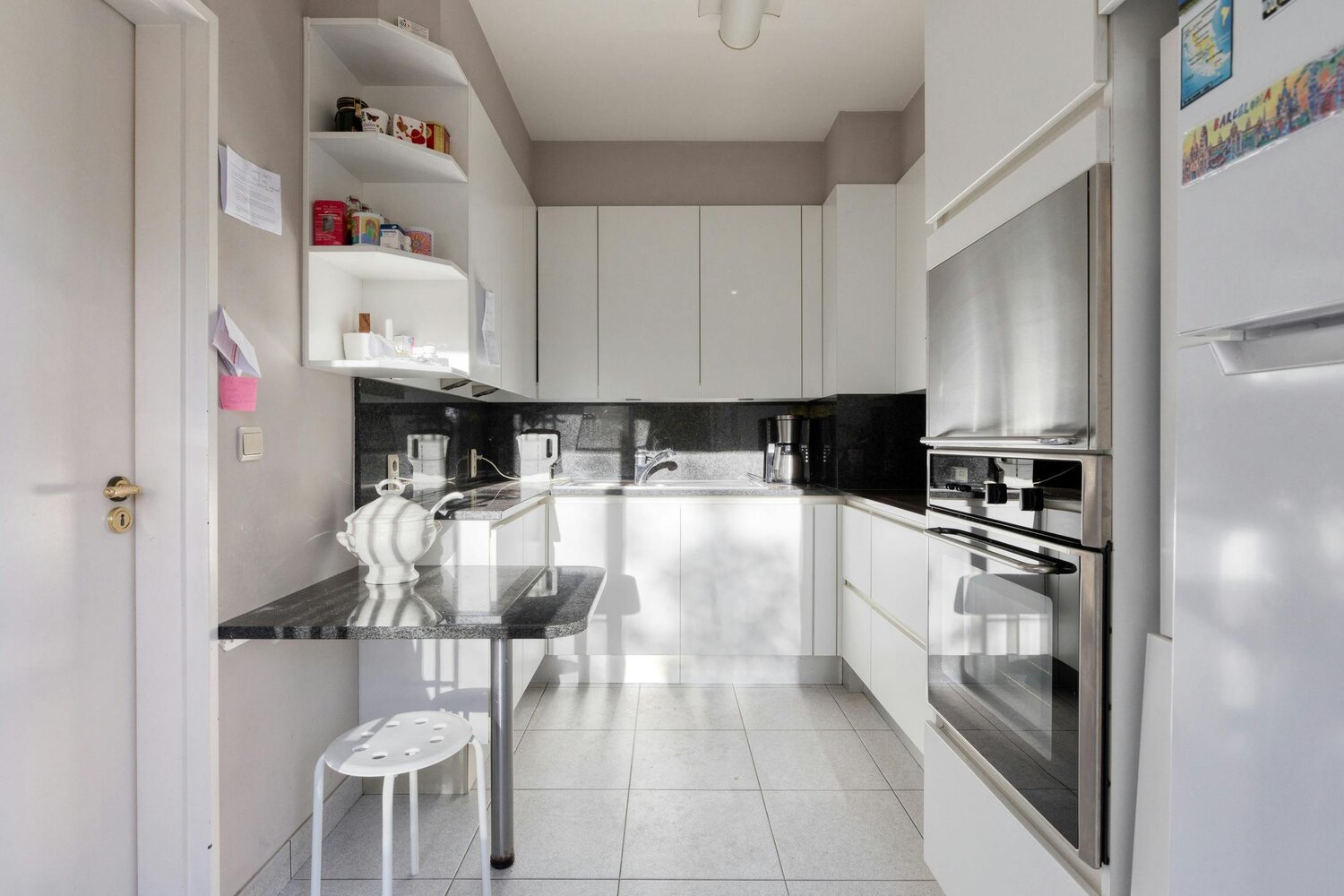 Je komt binnen in de ruime inkomhal met ingemaakte boekenkast. De authentieke deuren leiden je naar de woonkamer dat voldoende plaats biedt voor een gezellige zithoek en eetruimte. De keuken is aansluitend, volledig uitgerust en geeft toegang tot het aangename terras van ca. 7 m², waar u volop kan genieten van het groene zicht.