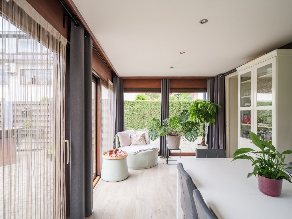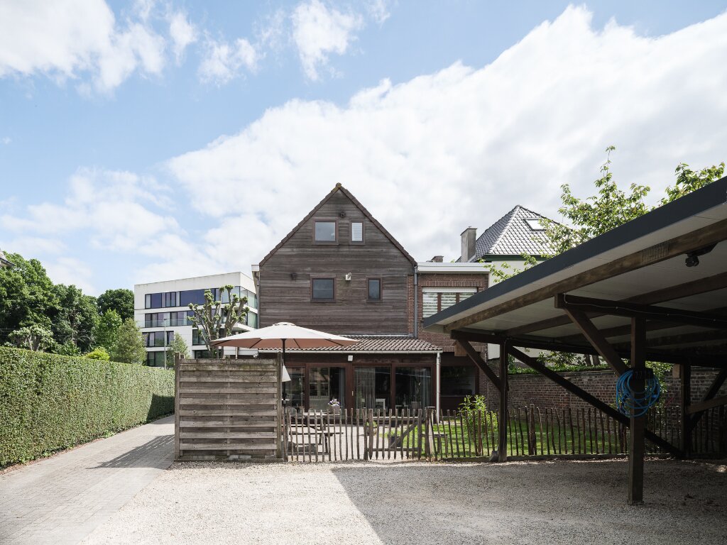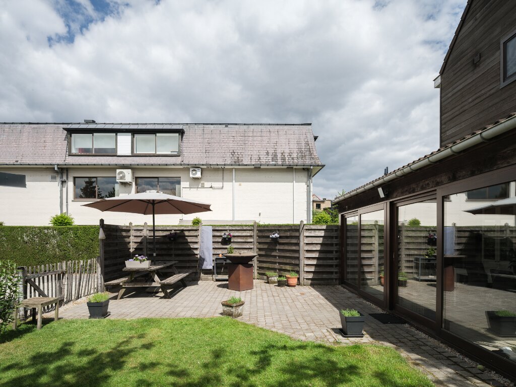 - Gelijkvoers appartement (+ 111m2 bvo) met 2 slaapkamers, ruime tuin met 3 carports (+zonnepanelen), tuinhuis en polyvalente ruimte (voorzien in polyvalent bijgebouw)