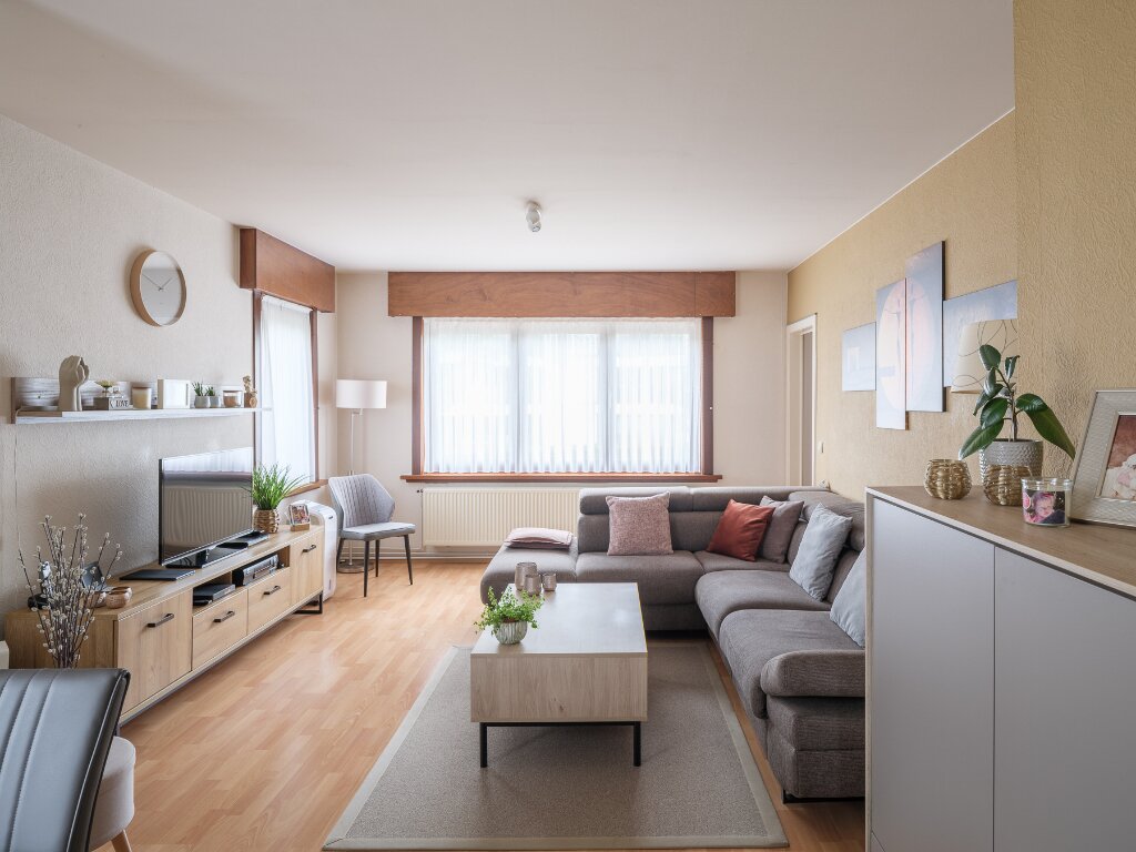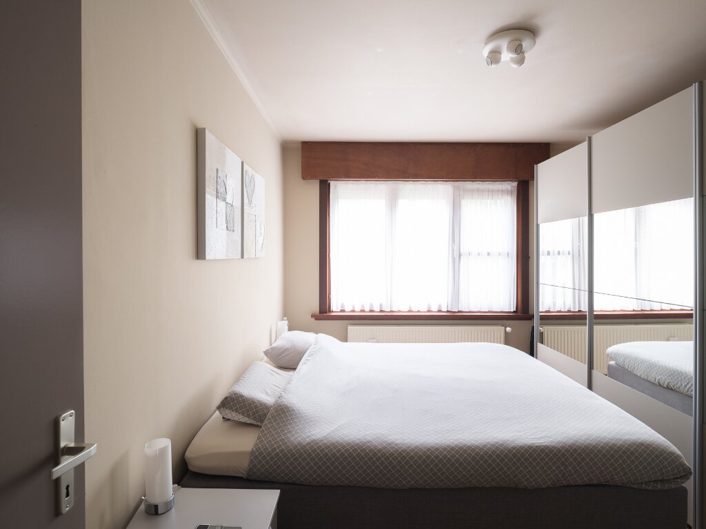- Appartement op de eerste verdieping (+ 91 m2. Bvo) met 2 slaapkamers met 2 staanplaatsen vooraan inbegrepen.