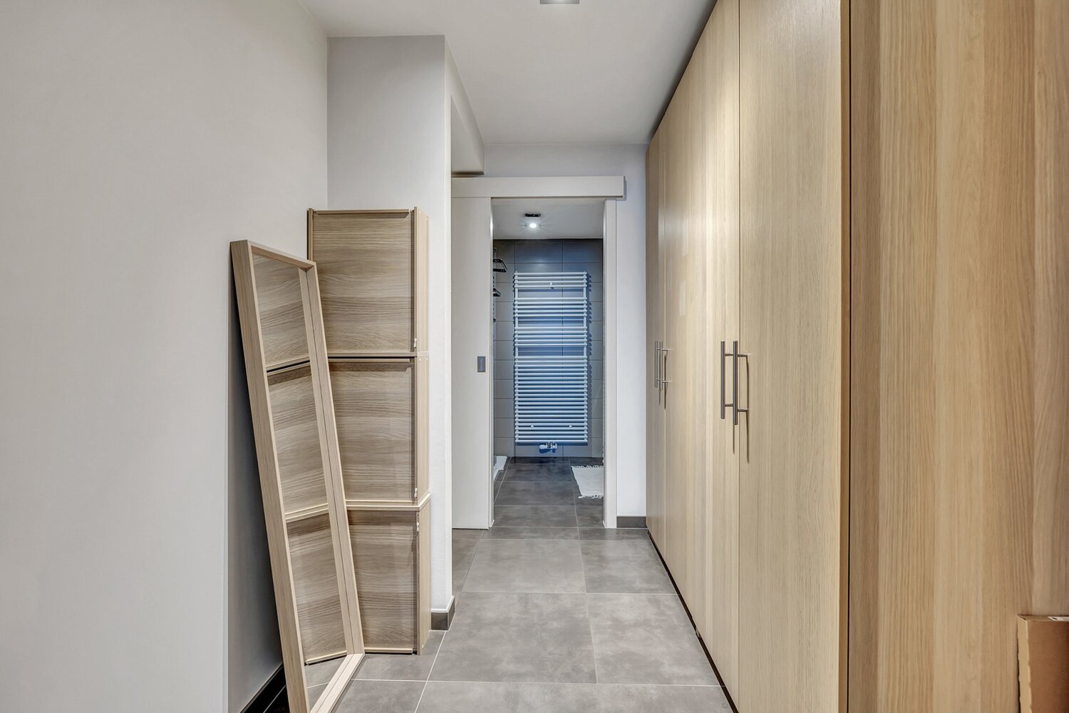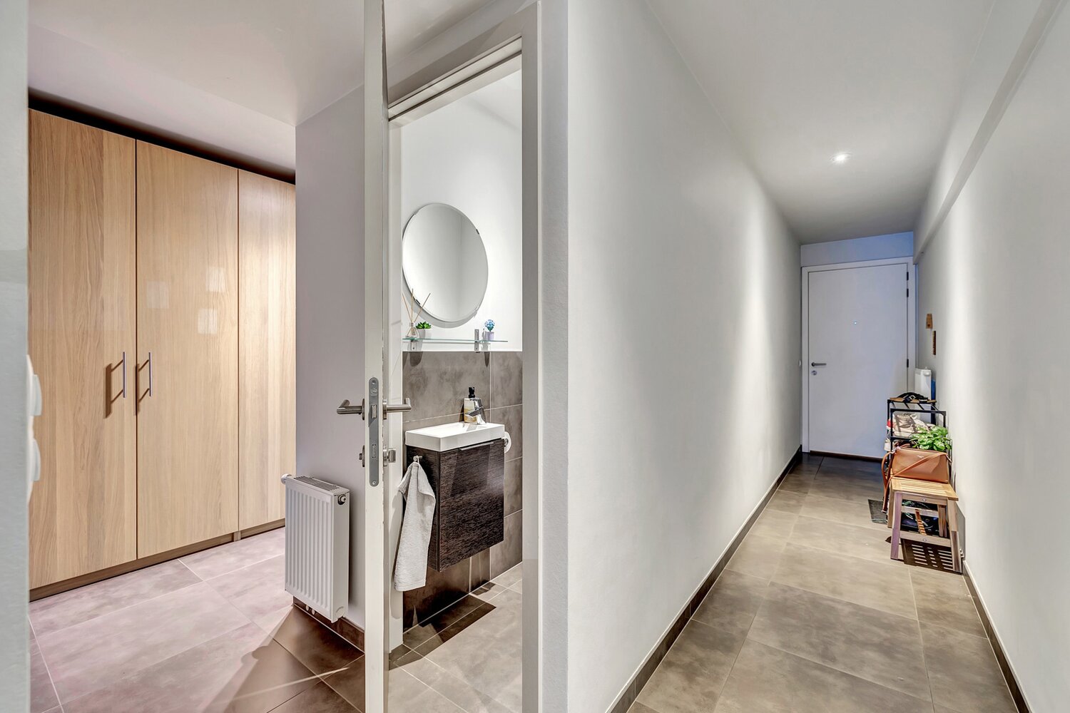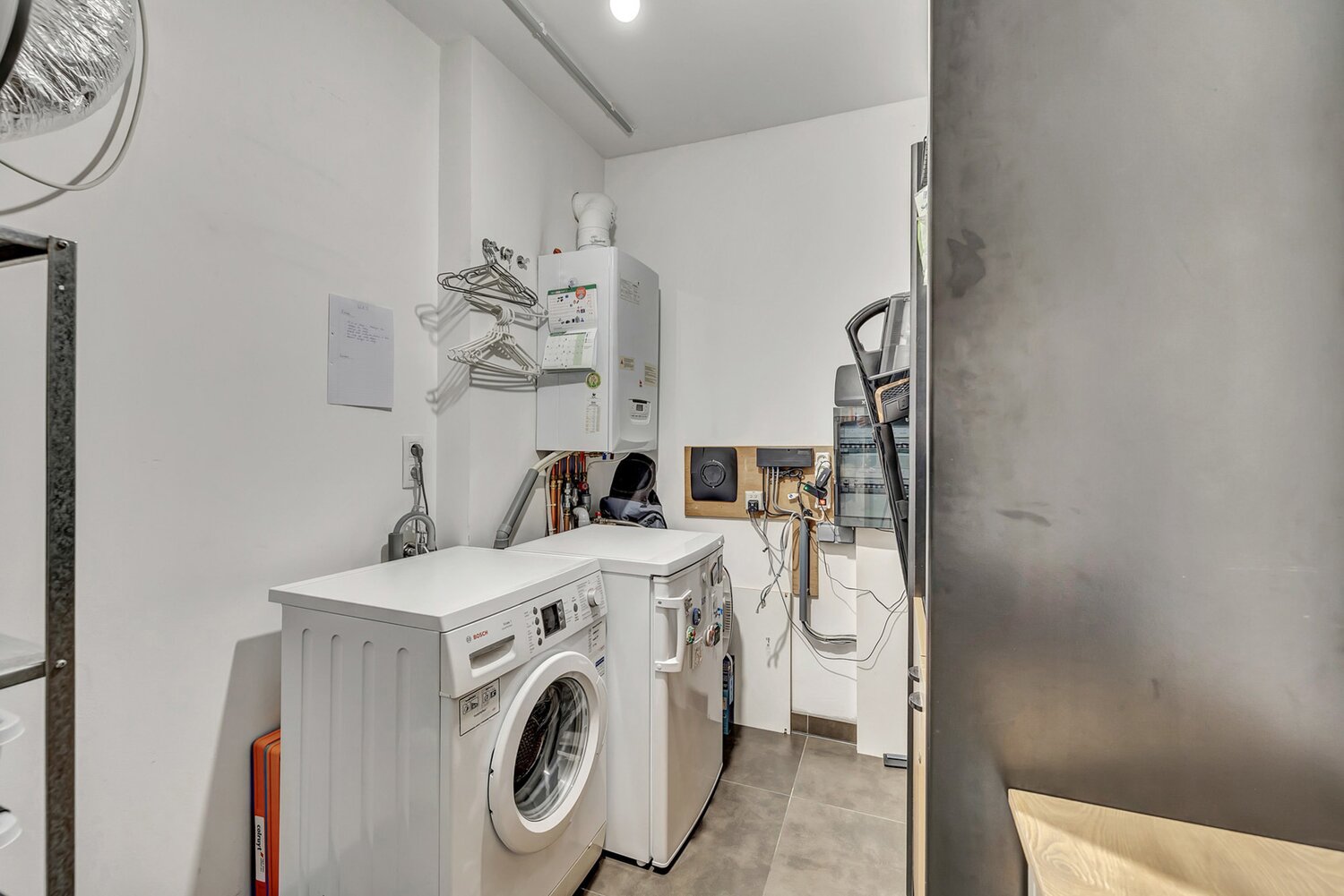Voor meer info of een bezoek, bel 054 69 39 32 - Op een uitstekende locatie, vlakbij het station van Denderleeuw, vinden we dit gezellig en modern appartement terug. Dankzij de centrale ligging geniet u hier van een vlotte bereikbaarheid en alle voorzieningen op wandelafstand. Bij het betreden van het appartement komen we in een ruime inkomhal die toegang geeft tot de lichtrijke leefruimte met open, volledig ingerichte keuken. De keuken is voorzien van alle hedendaagse toestellen zoals een koelkast, vaatwasmachine en oven – ideaal voor wie houdt van comfort en gebruiksgemak. Via een grote glazen deur bereikt u het aangename terras, waar u in alle rust kunt genieten van een tas koffie of een gezellige avond met vrienden. De slaapkamer bevindt zich aan de voorzijde van het gebouw en is bereikbaar via een tussenruimte die perfect kan dienen als dressing of bureauruimte. Verder beschikt het appartement over een moderne badkamer met douche, een apart toilet en een ruime berging met extra opbergruimte. Tot slot is er een privatieve autostaanplaats inbegrepen in de prijs. Dit instapklare appartement is de ideale keuze voor wie op zoek is naar een eigentijdse woonst met een uitstekende ligging en alle comfort binnen handbereik!