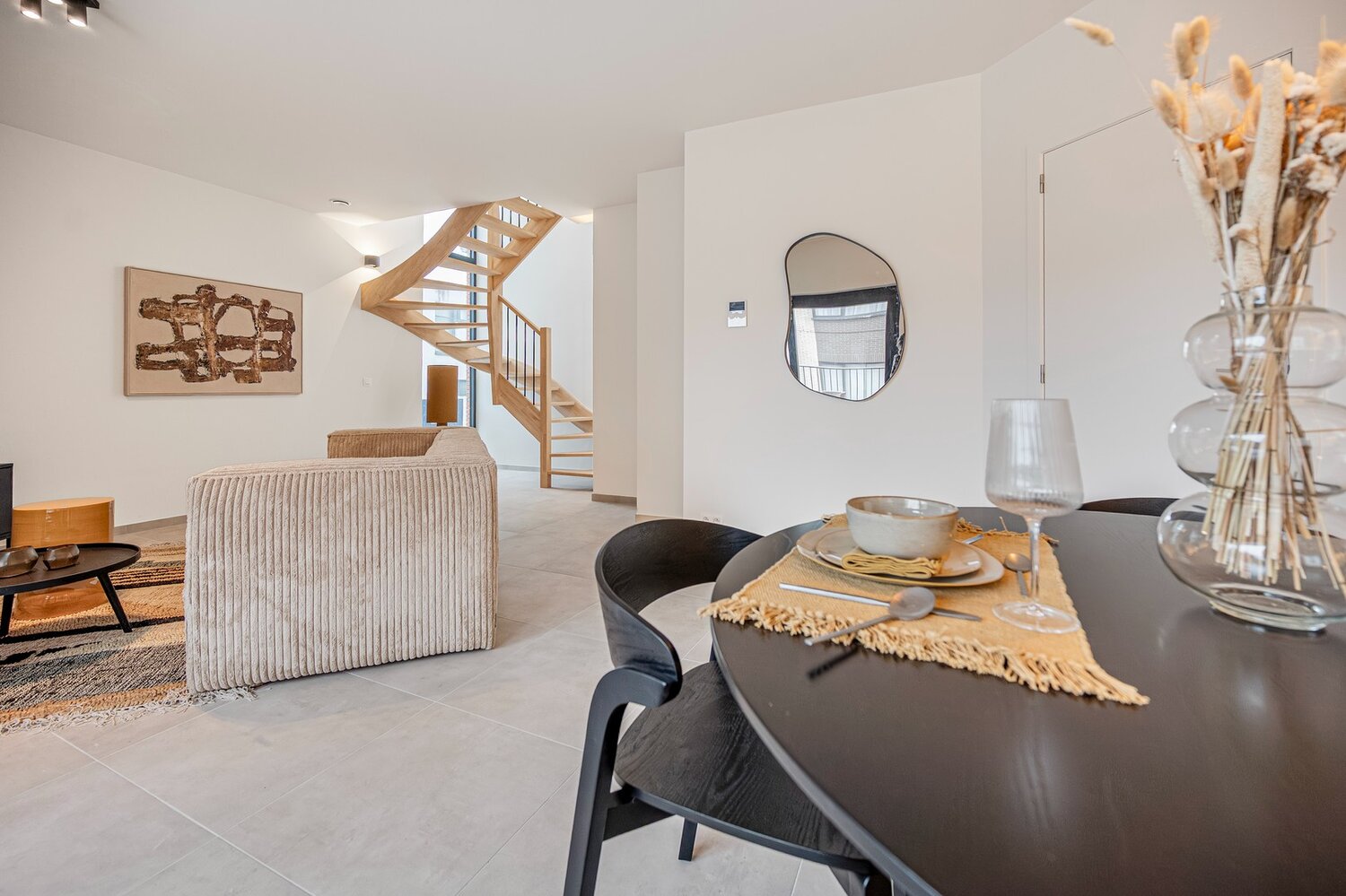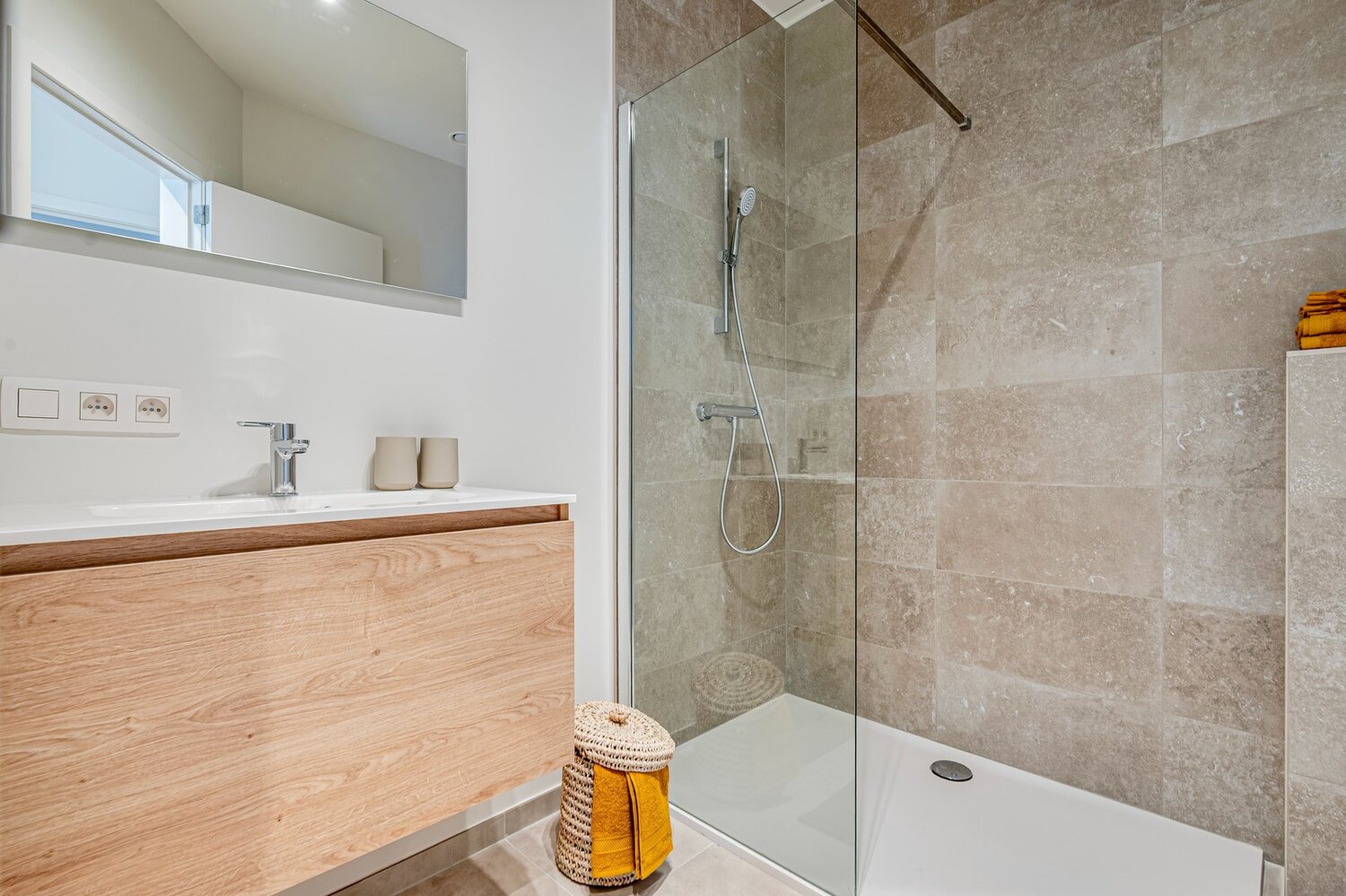 Deze 3 nieuwbouwappartementen zijn voorzien van alle modern comfort, energie neutraal en knappe architectuur. De oppervlaktes van de appartementen liggen tussen de 100 en 111m2 en zijn telkens voorzien van 2 slaapkamers, een overdekt zonneterras en een praktische berging. extra's: ruime fietsenstalling en vuilnisberging voorzien, alles volledig geschilderd+verlichting, inclusief privatieve zonnepanelen, warmtepomp, lage gemeenschappelijke kosten (geen lift). Dit project valt onder 6% BTW (mits voorwaarden).