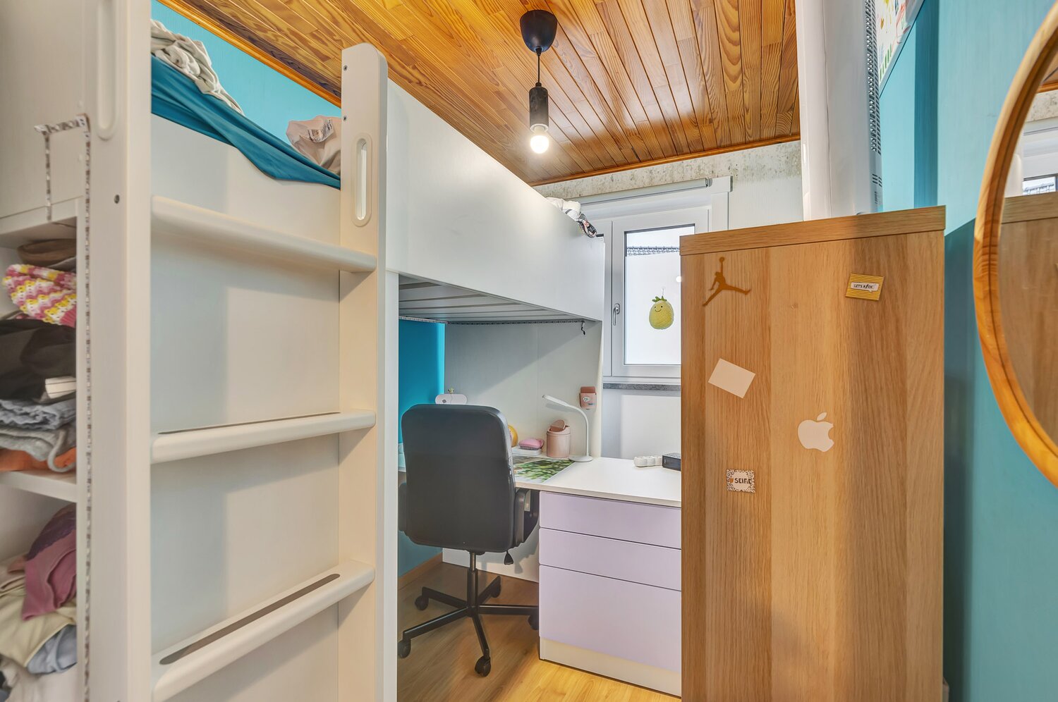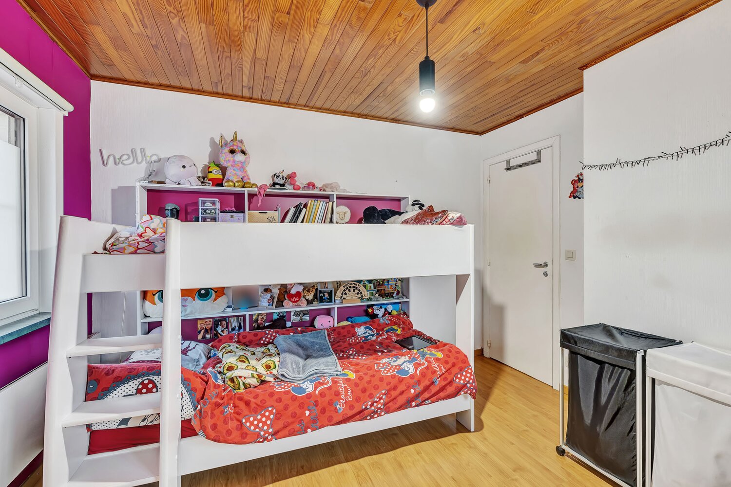 Bij het betreden van de woning komt u in de inkomhal met apart gastentoilet. De lichtrijke living sluit aan op de keuken en vormt een aangename leefruimte. Op de verdieping bevinden zich drie slaapkamers en een badkamer. De zolder biedt bijkomende opbergruimte en extra mogelijkheden.