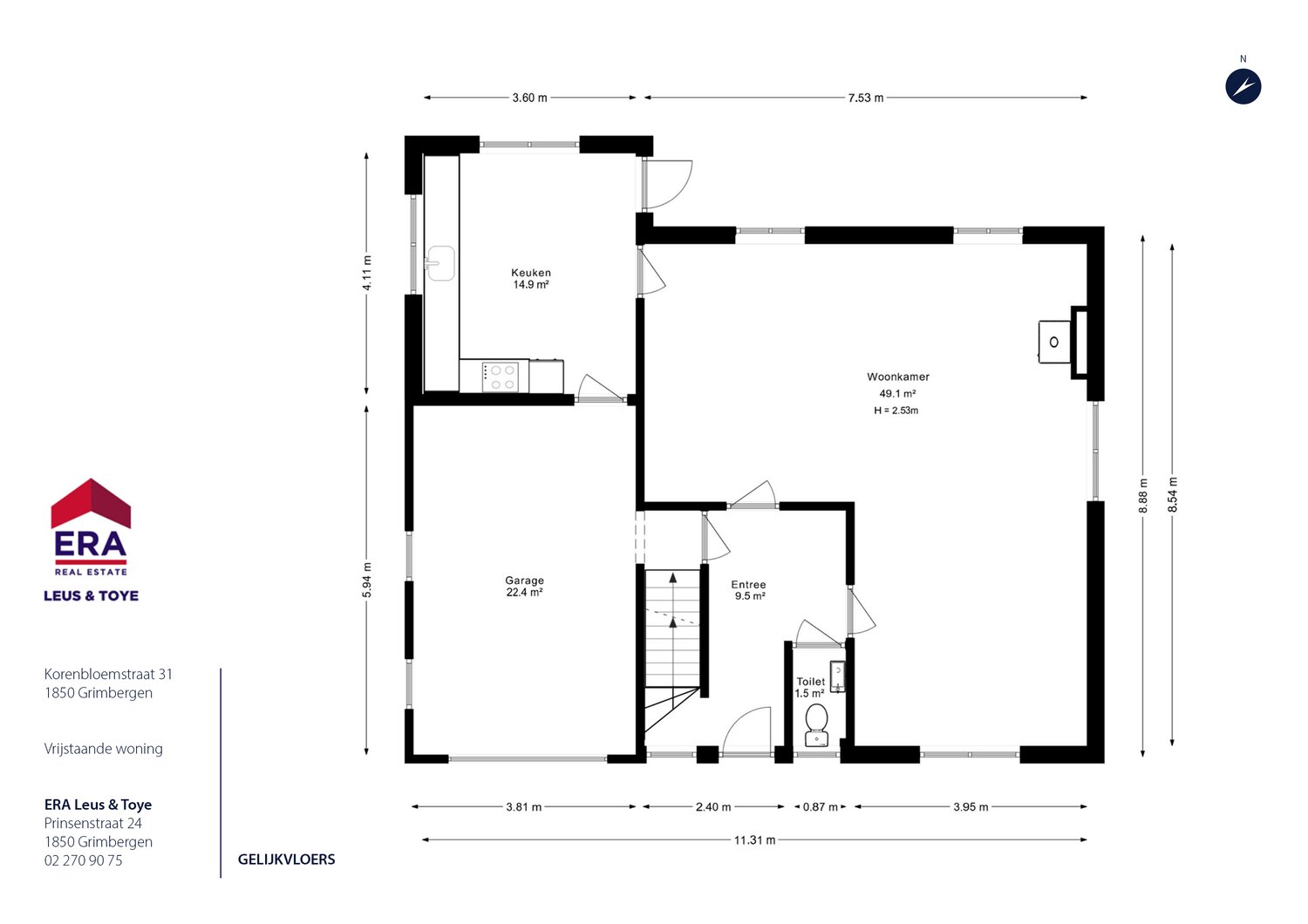 • Garage (22,4 m²) met directe toegang tot de woning.