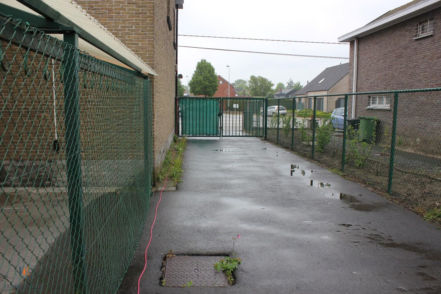 een poort links van het gebouw zorgt voor extra veiligheid.