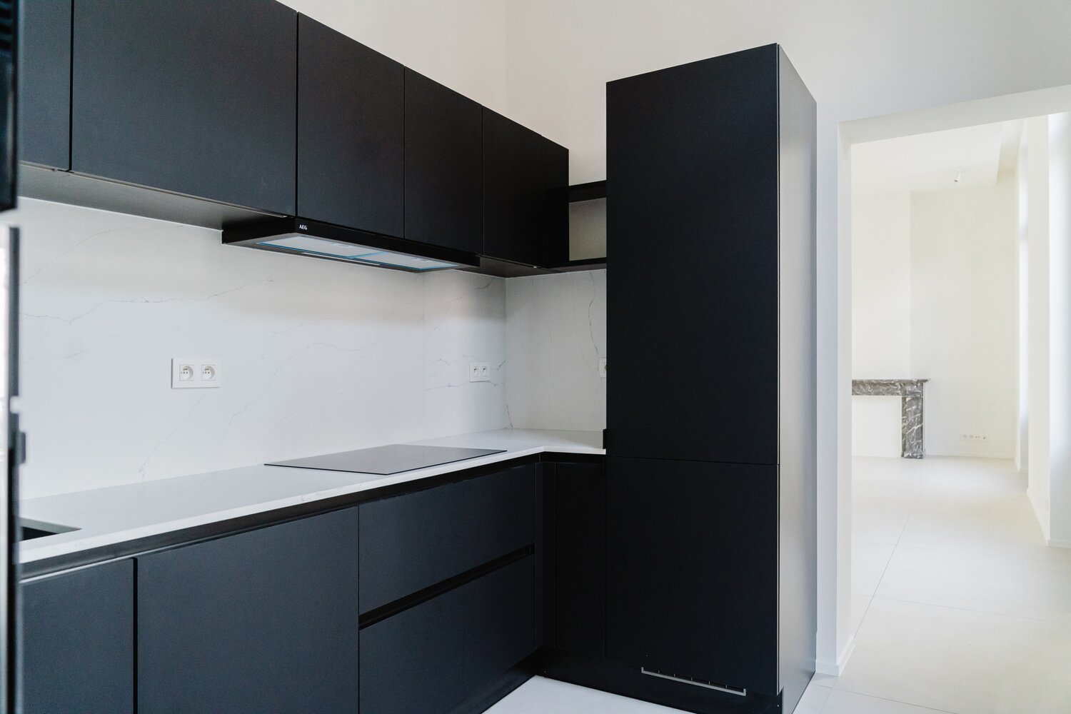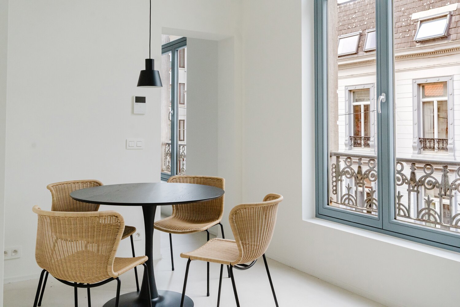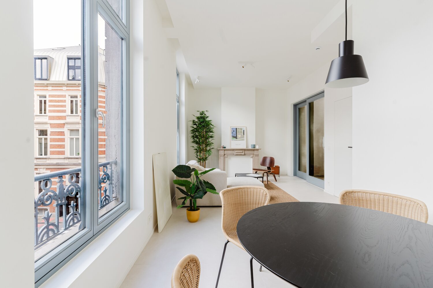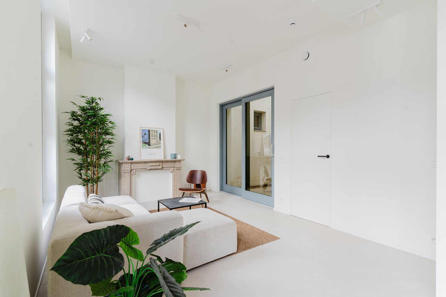 De grondige renovatie werd uitgevoerd met hoogwaardige materialen en moderne installaties zoals warmtepomp, vloerverwarming, zonnepanelen en ventilatiesysteem D. Resultaat: energiezuinige wooneenheden met EPB-label A (E-peil < 50).