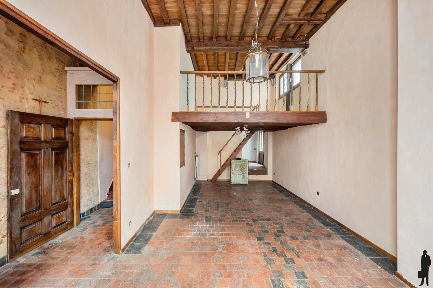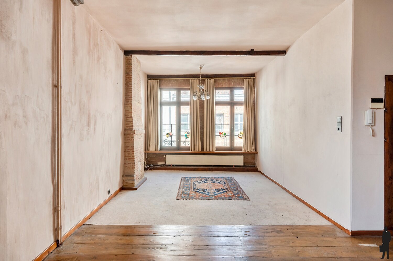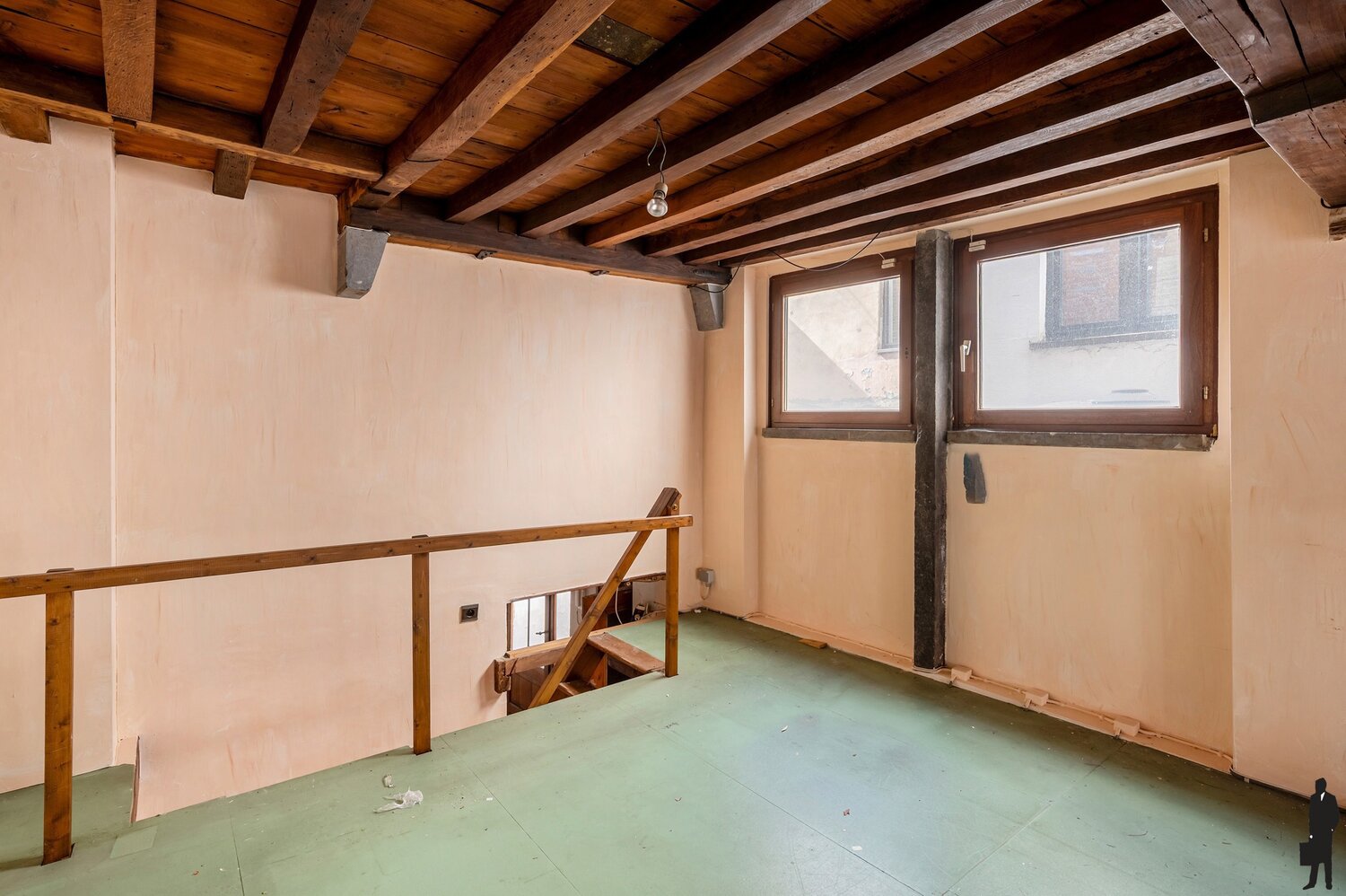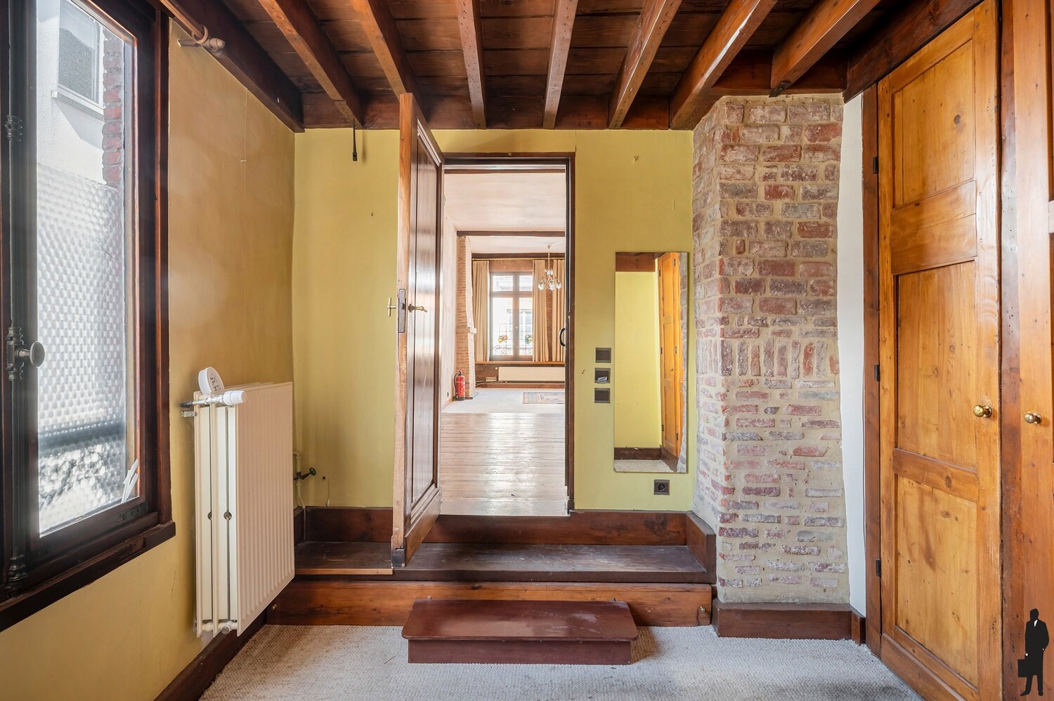 Achter de charmante gevel schuilt een veelzijdige woning met tal van mogelijkheden. Op het gelijvkloers bevindt zich een ruime atelierruimte met mezzanine en aansluitende koer. Ook het tussenverdiep kan perfect dienstdoen als extra werk- of slaapkamer.