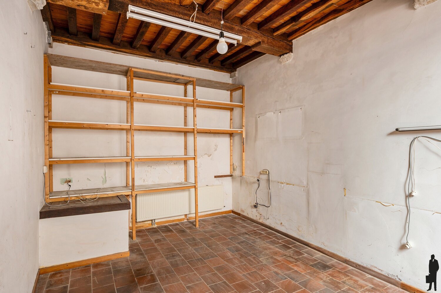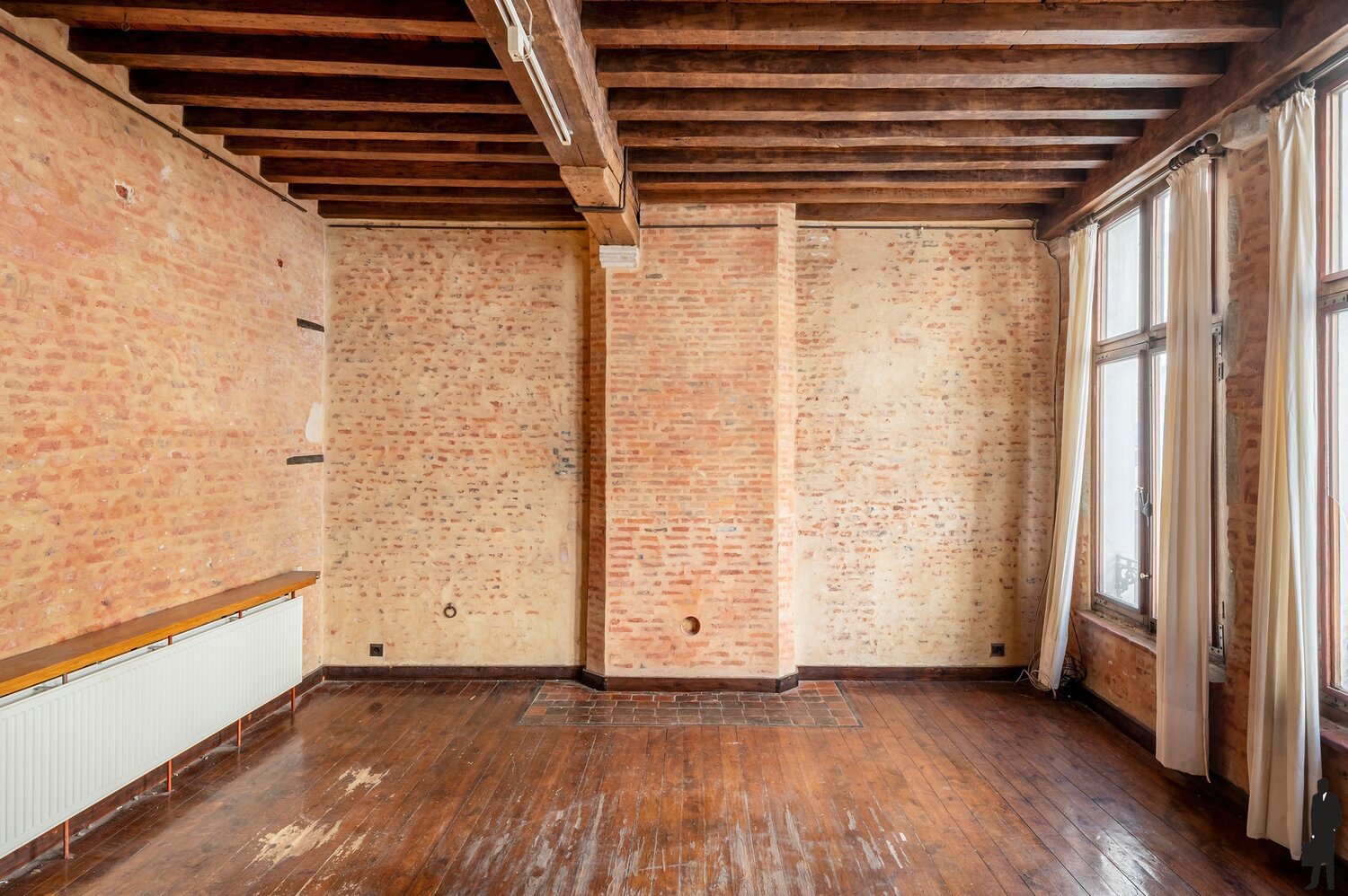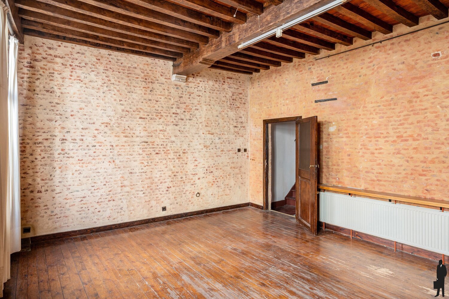 Achter de charmante gevel schuilt een veelzijdige woning met tal van mogelijkheden. Op het gelijvkloers bevindt zich een ruime atelierruimte met mezzanine en aansluitende koer. Ook het tussenverdiep kan perfect dienstdoen als extra werk- of slaapkamer.