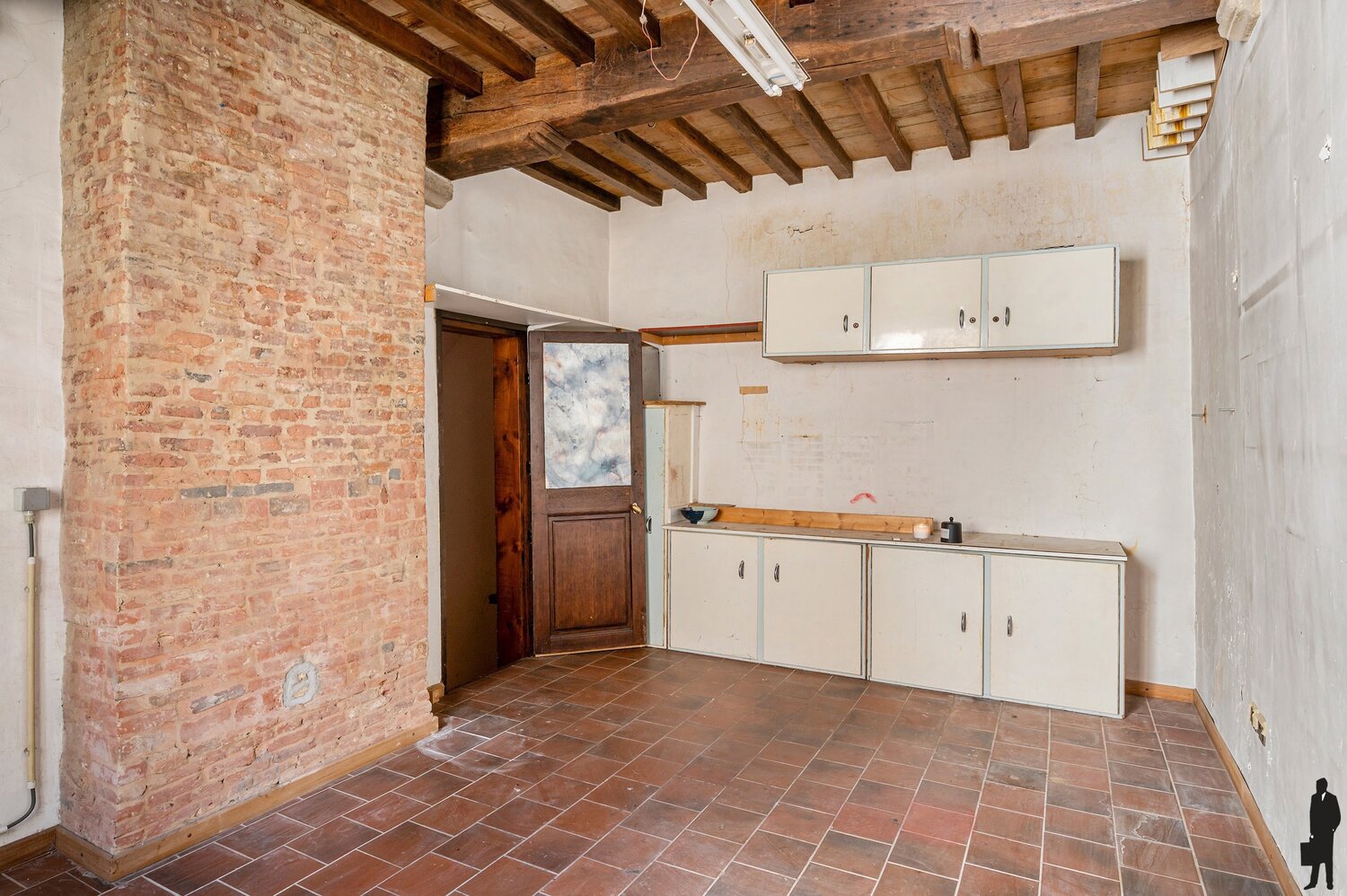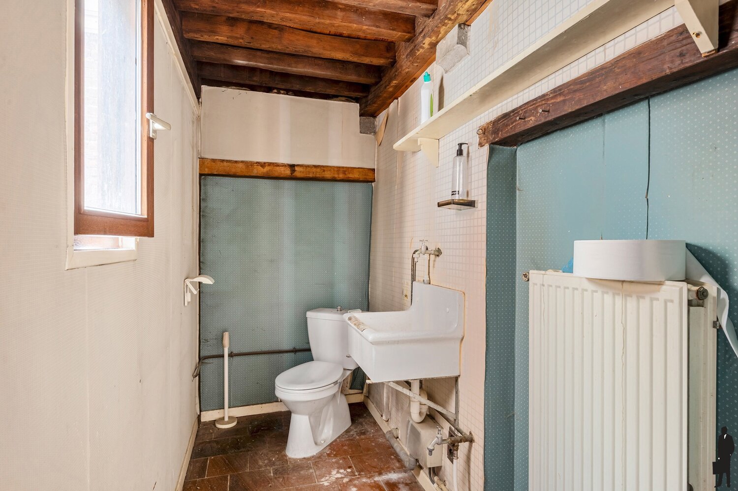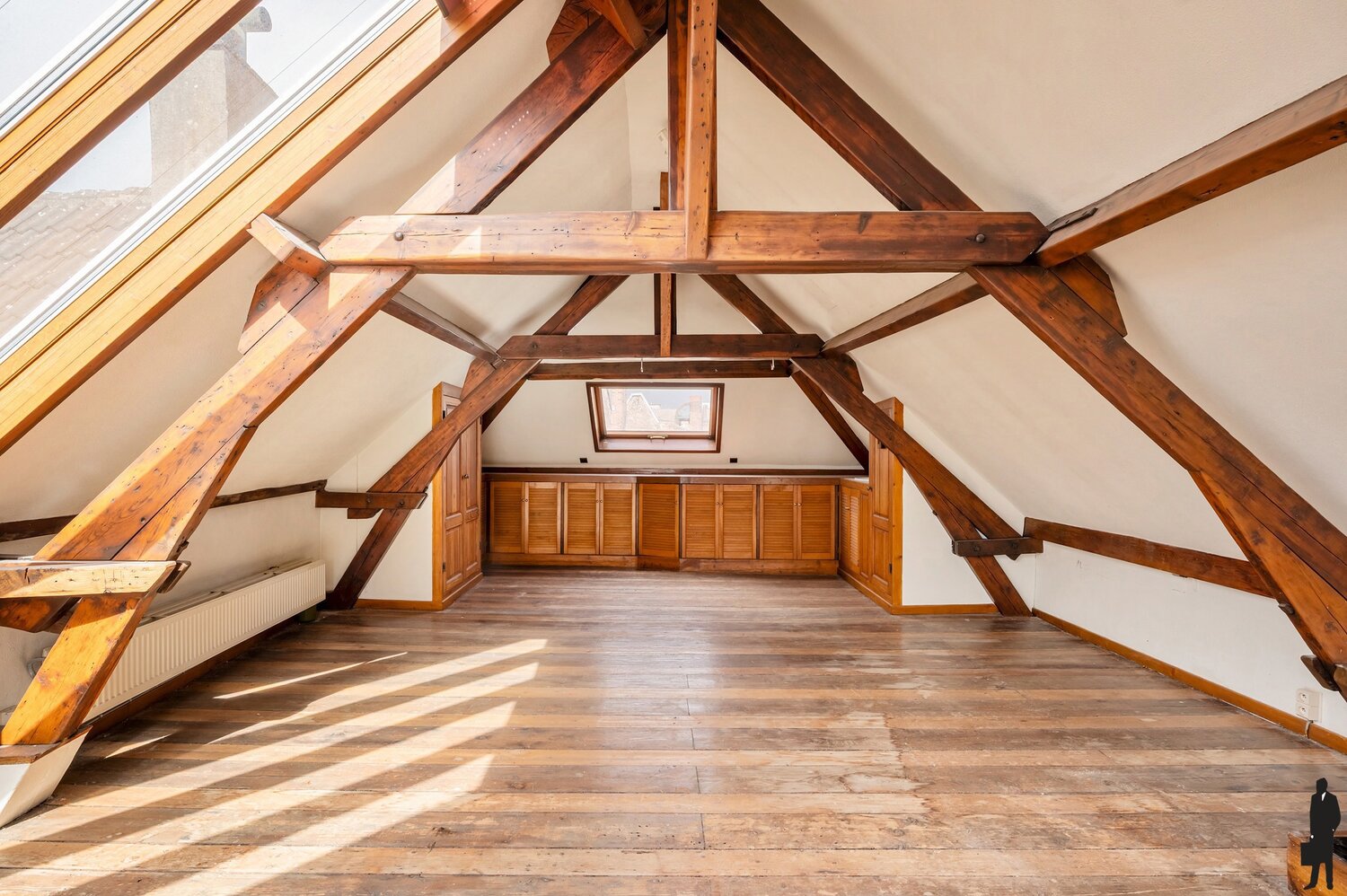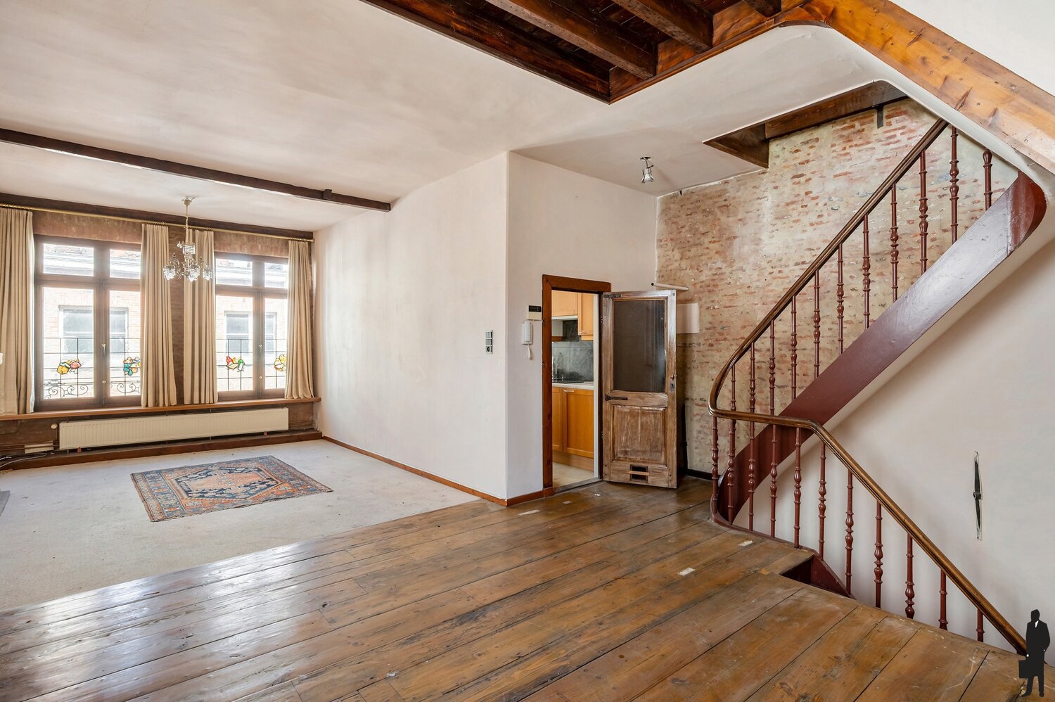 Achter de charmante gevel schuilt een veelzijdige woning met tal van mogelijkheden. Op het gelijvkloers bevindt zich een ruime atelierruimte met mezzanine en aansluitende koer. Ook het tussenverdiep kan perfect dienstdoen als extra werk- of slaapkamer.