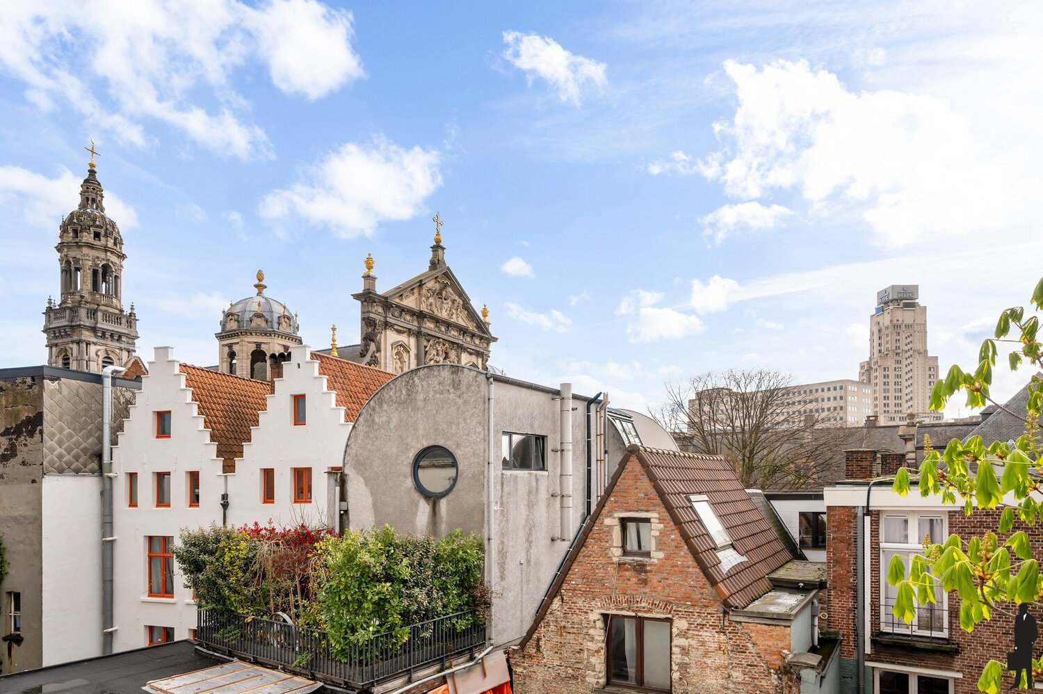 Zowel vanuit de leefruimte als vanop het terras geniet u van een prachtig zicht op de Kathedraal en de Boerentoren: een zeldzame troef in het centrum van de stad.