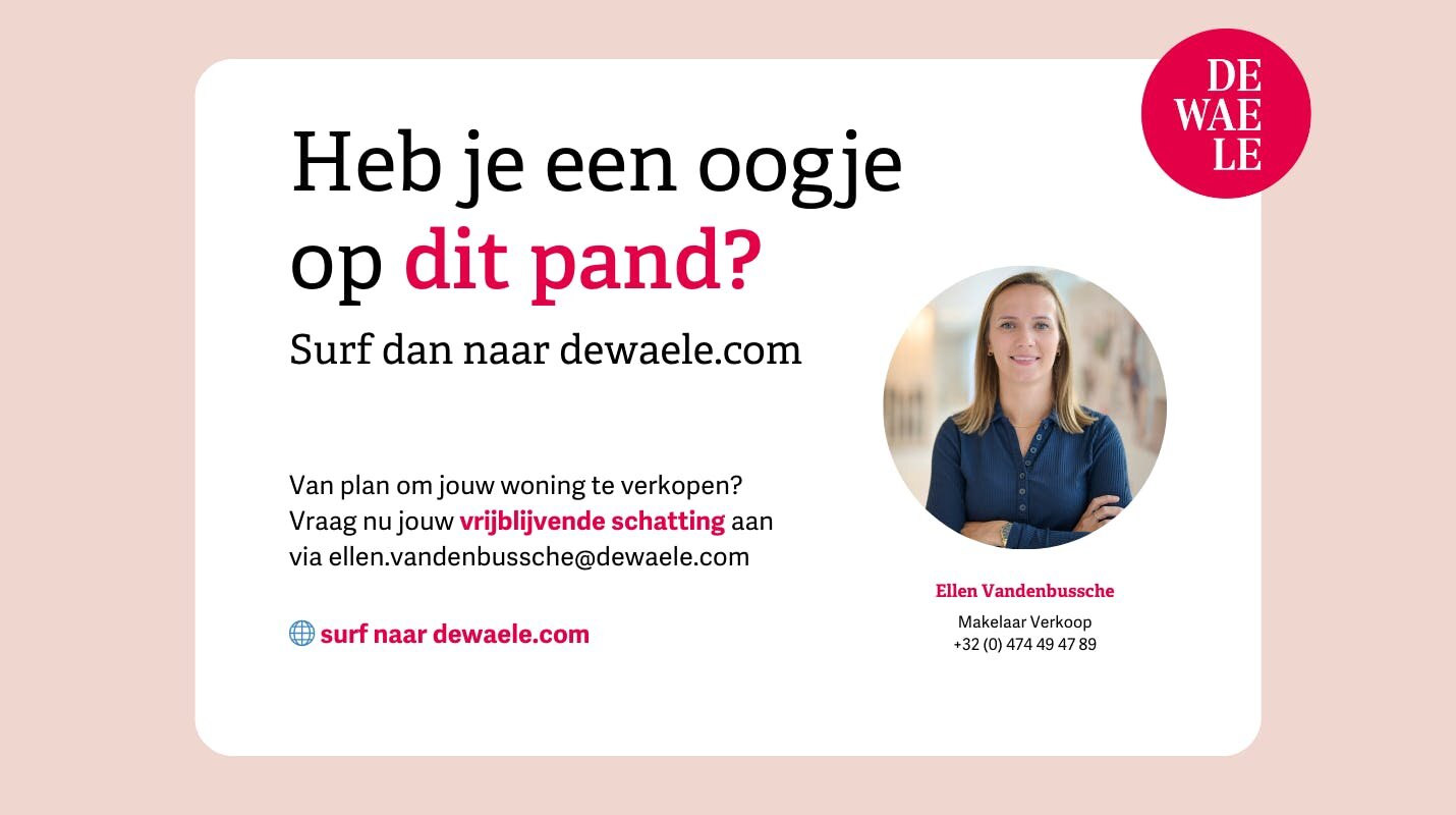 Dit pand is onderworpen aan de renovatieverplichting van de Vlaamse overheid voor residentiële gebouwen (behoudens bij sloop binnen 5 jaar na de aankoop). Consulteer voor meer informatie de website van het Vlaams Energie- en Klimaatagentschap via https://www.vlaanderen.be/een-woning-kopen/renovatieverplichting-voor-residentiele-gebouwen