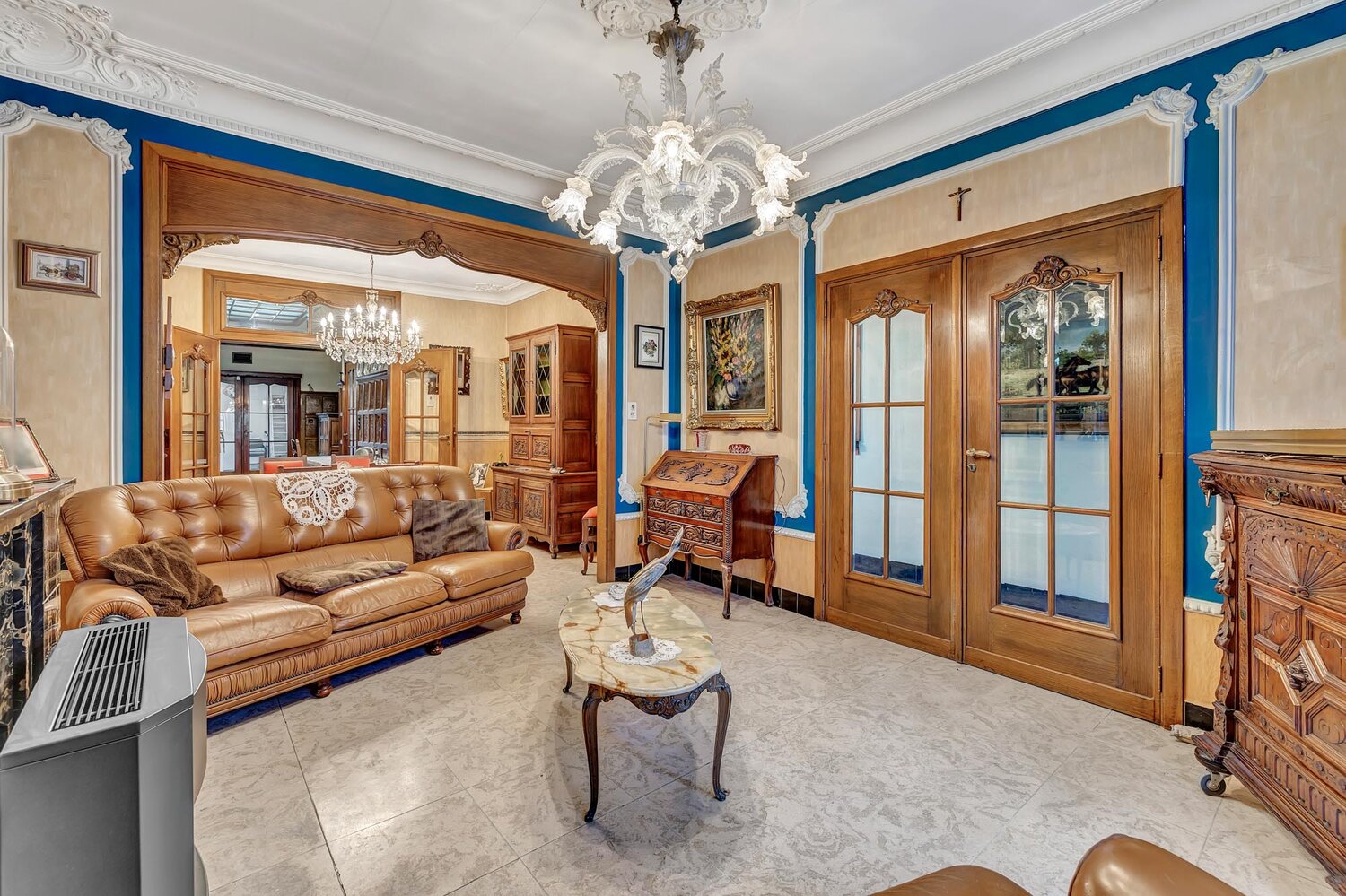 Voor meer info of een bezoek, bel 054 69 39 39 - Prachtig herenhuis met art deco accenten nabij het centrum van Geraardsbergen. Op het gelijkvloers bevindt zich de ruime inkomhal die toegang geeft tot de living, de eetplaats, de keuken, de trappenhal, de kelder en het salon, elk met een aparte deur. Vanuit de inkomhal bereikt u links het salon, gescheiden van de eetplaats door een prachtige houten deurpartij met geslepen glas. Aansluitend bevinden zich de keuken, de badkamer en de veranda, met toegang tot een kleine stadstuin en een bijgebouw (gelijkvloers en eerste verdieping, elk ca. 11 m²), ideaal als hobbyruimte. Op de eerste verdieping zijn er twee ruime slaapkamers, waarvan één met terras aan de straatzijde in natuursteen. De gang en de nachthal zijn voorzien van ingebouwde kasten. Via een tussenverdiep bereikt u de tweede verdieping met de nachthal en opnieuw twee volwaardige slaapkamers. Een vaste trap leidt naar de inrichtbare zolder. Deze charmante woning onderscheidt zich door haar architecturale accenten, ruime kamers en centrale ligging nabij het centrum van de Oudenbergstad. Na de nodige (energetische) renovatie vormt dit pand een unieke thuis met veel potentieel.