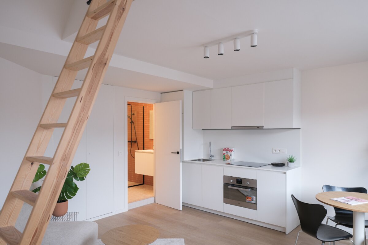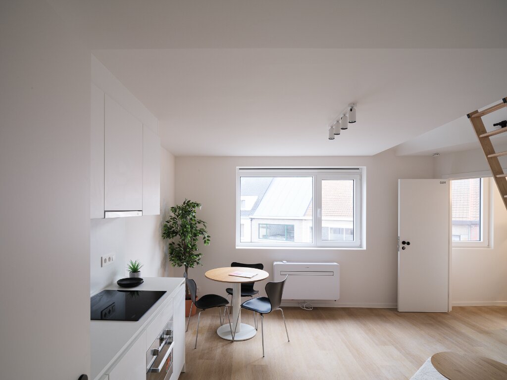 Elke studio heeft een open karakter, een moderne keuken met hedendaags comfort en een badkamer met inloopdouche. Dankzij de grote raampartijen genieten alle units van voldoende natuurlijk licht. Bovendien beschikt de studio op de bovenste verdieping over een extra slaapmezzanine.