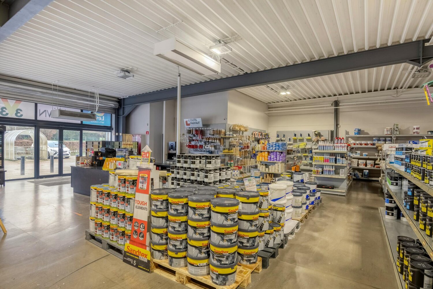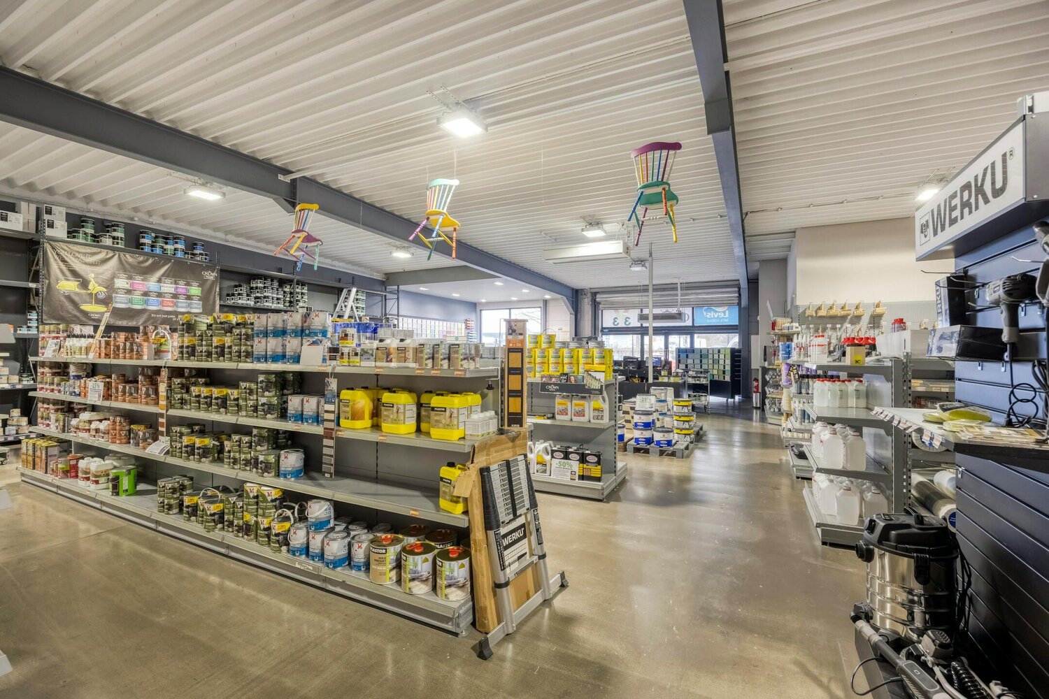 -Bebouwde oppervlakte: 800 vierkante meter verdeeld in twee bedrijfsruimtes.