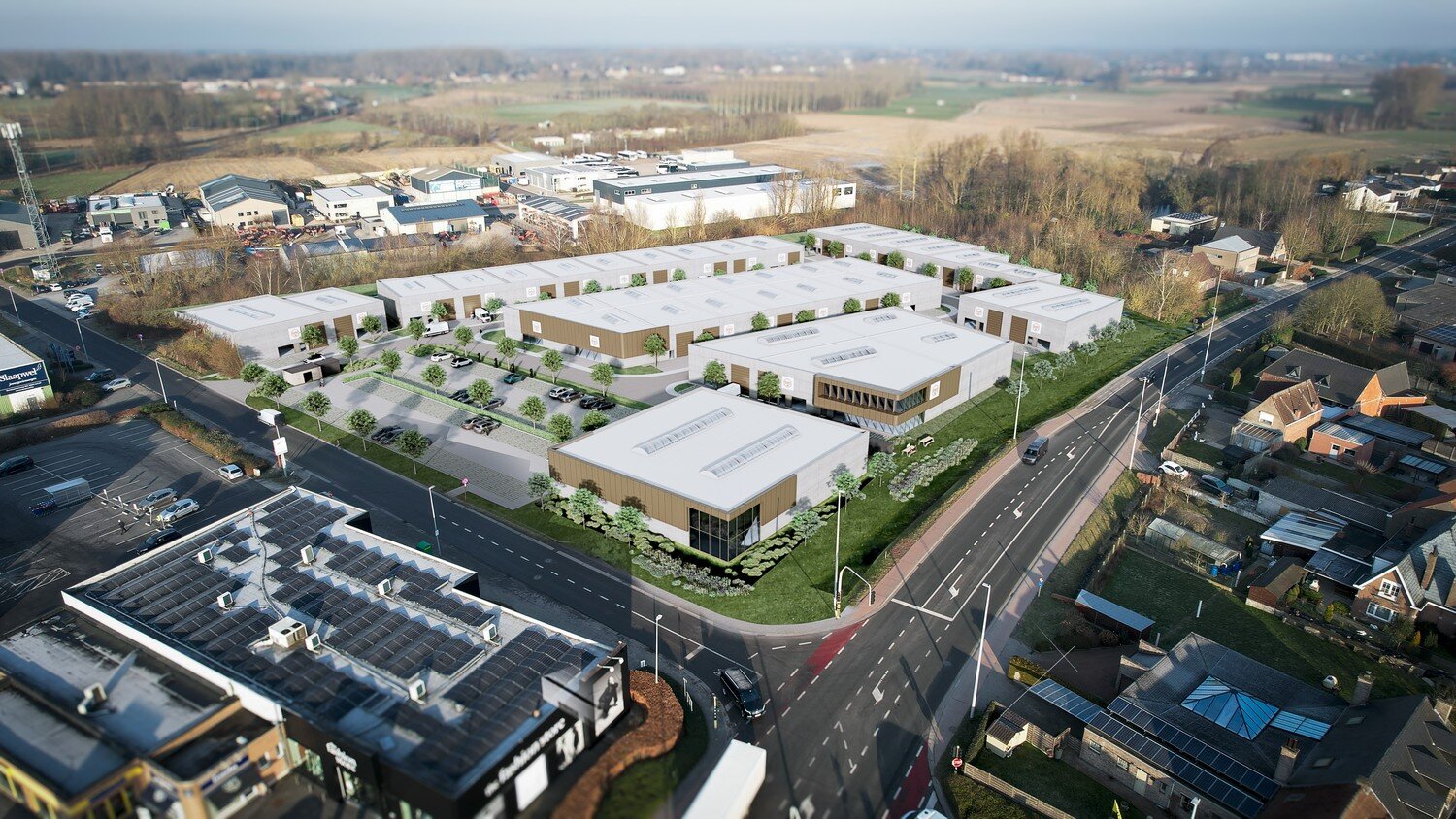 Deze KMO-unit van 241m² maakt deel uit van het nieuwe KMO park Heiplas met 39 nieuwbouw, casco KMO-units op de hoek van de Kleiweg en de Wichelsesteenweg te Lede.