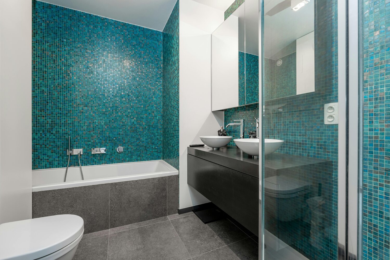 - Badkamer (8m²) voorzien van bad, douche, dubbele lavabo en toilet