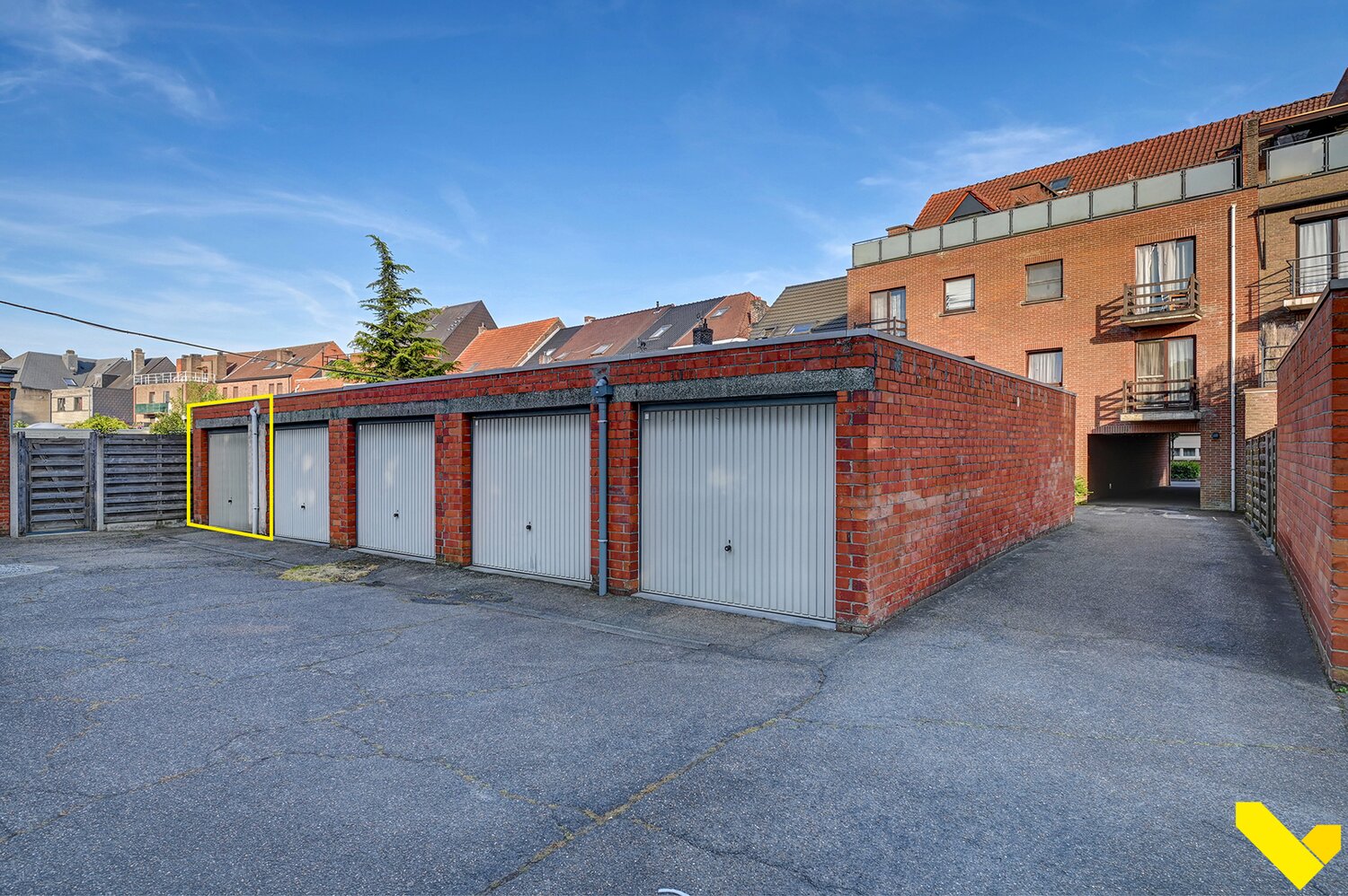 Er is een garage achteraan mits meerprijs van 20.000 euro, toegankelijk langs het naastliggend gebouw. Ideaal dus om uw auto en/of fietsen binnen te parkeren.