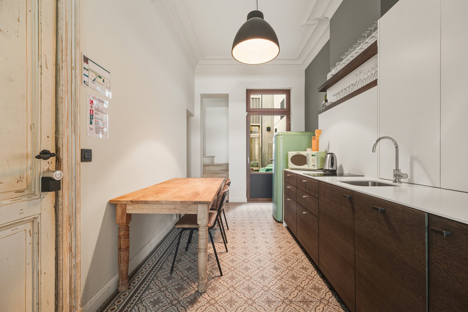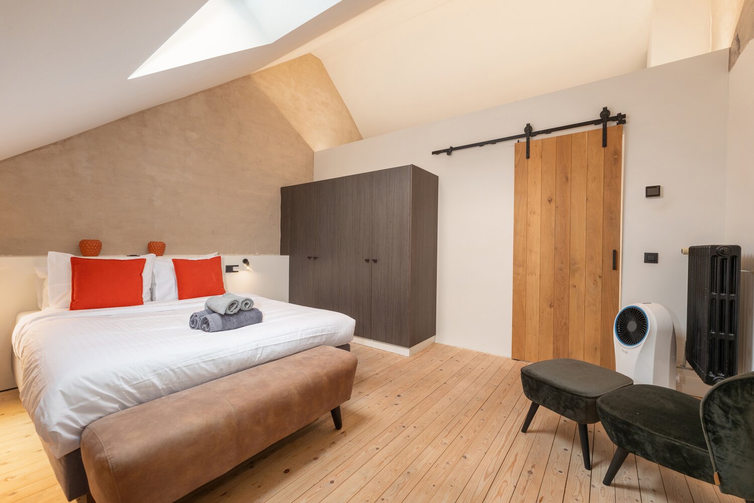 Het gelijkvloers en een deel van de eerste verdieping vormen een verblijf geschikt voor 4 personen, met een gezellige leefruimte, een volledig ingerichte open keuken, twee slaapkamers met telkens een en-suite badkamer en een aangenaam terras. Op de eerste verdieping bevindt zich een tweede appartement voor twee personen met leefruimte, open keuken, slaapkamer en badkamer. Het derde appartement, geschikt voor zes personen, beslaat de tweede en derde verdieping en beschikt over een ruime leefruimte, een volledig uitgeruste keuken, drie slaapkamers en twee badkamers.