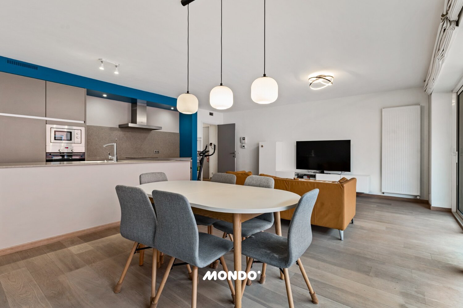 Lichtrijke leefruimte met directe toegang tot de terrassen.