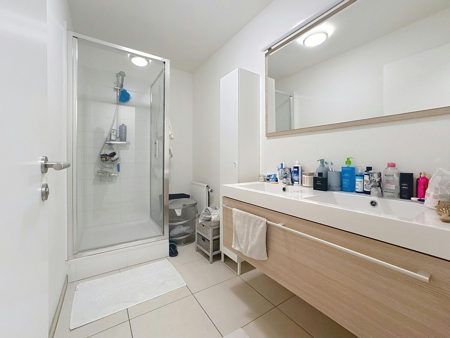 - douchekamer met douche en dubbele wastafel,