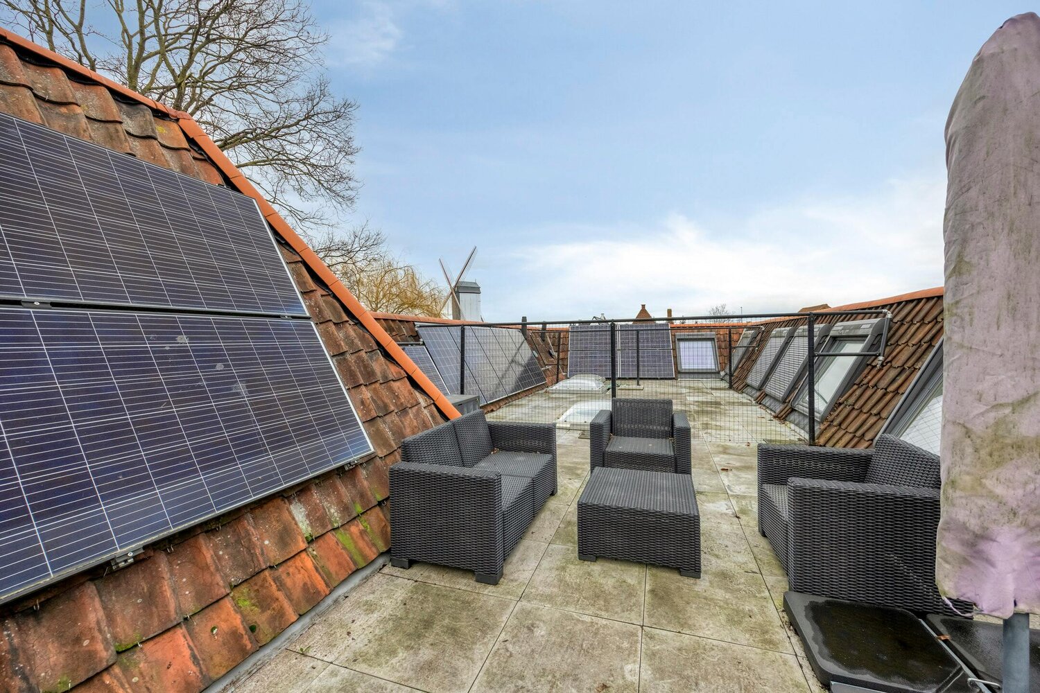 Gelegen nabij de Kruispoort geniet u van een vlotte bereikbaarheid, met het bruisende centrum en de ring binnen handbereik. Het ruime stadsterras en het unieke dakterras met zicht op de Brugse molens vormen een zeldzame en waardevolle troef.