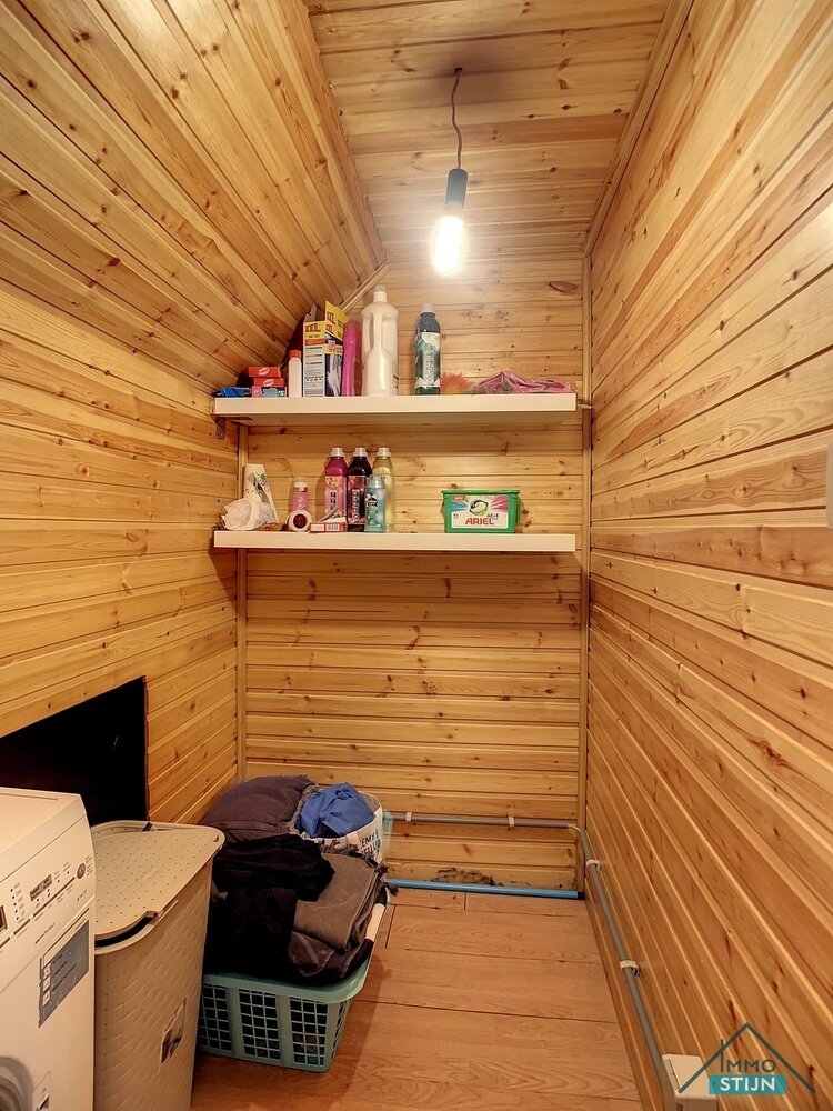 Op de eerste verdieping van dit gebouw, midden in het centrum van Aartrijke, bevindt zich dit ruime duplex appartement. Via de trap bereik je de gang op de eerste verdieping en de inkomhal, die toegang biedt tot de woonkamer. De woonkamer is royaal van formaat, met ruimte voor zowel een eetkamer als een zithoek. Vanuit de woonkamer bereik je een gang die leidt naar de keuken en de badkamer. De keuken is uitgerust met een keramische kookplaat, dampkap, oven en koelkast, terwijl de badkamer een ligbad en toilet bevat. Een tweede trap brengt je naar de bovenverdieping, waar een nachthal toegang geeft tot twee slaapkamers, een wasplaats, een dressing en een berging. De elektriciteit is conform het AREI. Achteraan de residentie bevindt zich een staanplaats die bij het appartement hoort. (sted.inl.: Vg,Wg,Gmo,Gvkr,Gvv)