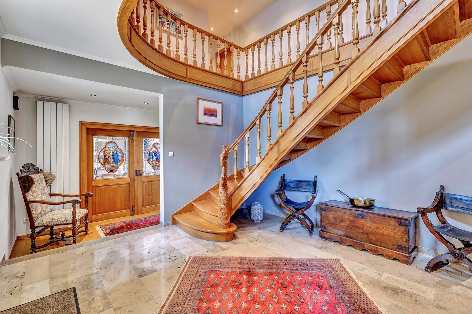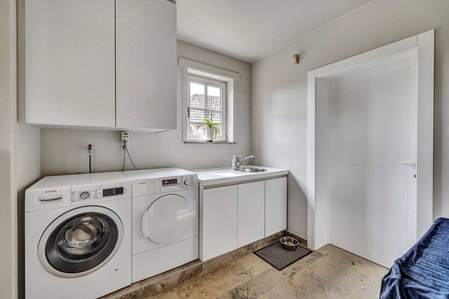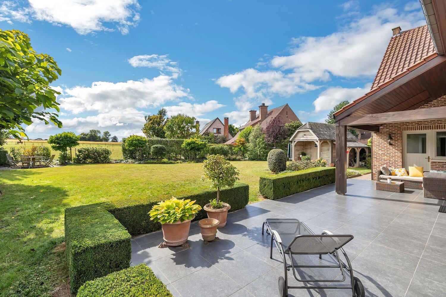 Voor meer info of een bezoek, bel 053 59 49 34 - Voor meer foto's, check www.topo-immo.be - Op een prachtige, groene ligging in Lennik bevindt zich deze hoogwaardig afgewerkte villa. De locatie vormt meteen de eerste troef: midden in het groen, in een rustige straat en toch op slechts enkele minuten van het centrum van Lennik, waar u alle nodige faciliteiten (winkels, openbaar vervoer, scholen, …) terugvindt. De woning werd gebouwd in 1993 en doorheen de jaren perfect onderhouden. Ze is volledig opgetrokken in beton en beschikt over een onderkeldering van ca. 60 m², twee inpandige garages en drie buitenstaanplaatsen. De totale bewoonbare oppervlakte bedraagt maar liefst ca. 550 m². We betreden de woning via de stijlvolle inkomhal die toegang biedt tot de verschillende ruimtes. Het gelijkvloers omvat een ruime, lichtrijke woonkamer met aansluitend de vernieuwde, hyper uitgeruste keuken met praktische berging. Daarnaast zijn er de garages en een bureauruimte van 30 m², die tevens kan ingericht worden als vijfde slaapkamer. Op de eerste verdieping bevinden zich vier royale slaapkamers. De masterbedroom (ca. 45 m²) beschikt over een dressing en een eigen badkamer. Een tweede slaapkamer werd voorzien van aansluitingen voor een douchekamer (nog te installeren). De derde en vierde slaapkamer delen een gemeenschappelijke badkamer. De zolder, bereikbaar via een vaste trap, biedt extra opbergruimte. Buiten geniet u van een volledig aangelegde, zuidgerichte tuin met terras, waar rust en privacy centraal staan en u een prachtig uitzicht heeft op de omliggende natuur. Bovendien werd recent een kwalitatief tuinhuis in hoogwaardig materiaal geplaatst. Kortom: deze villa combineert ruimte, comfort en een uitstekende ligging midden in het groen, vlak bij het centrum van Lennik. Gunstig EPC (B) - Prachtige ligging - Rustige straat - Betonnen constructie - Instapklaar - Goed onderhouden - CV op gas - Dubbele beglazing - Hoogwaardige materialen