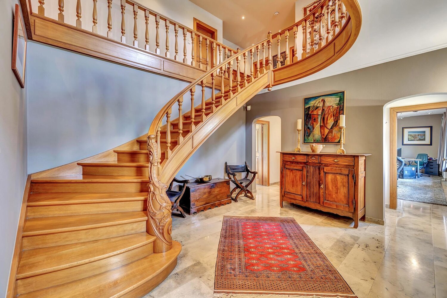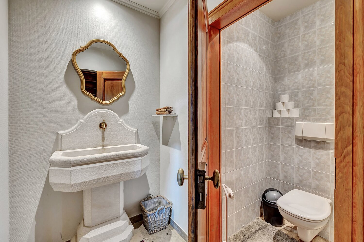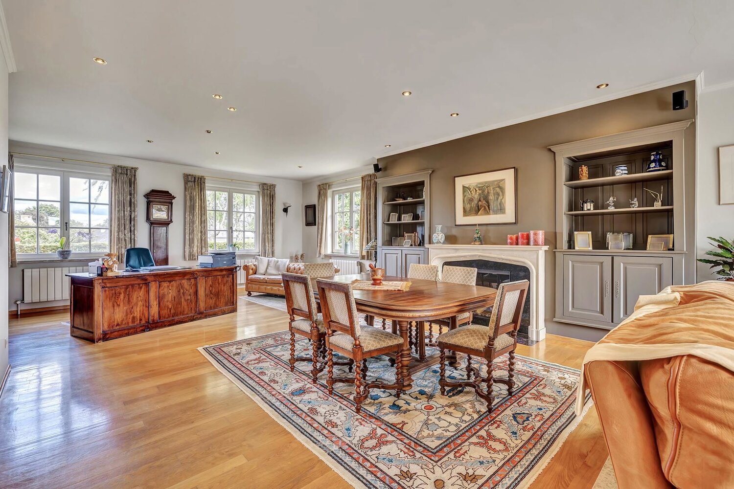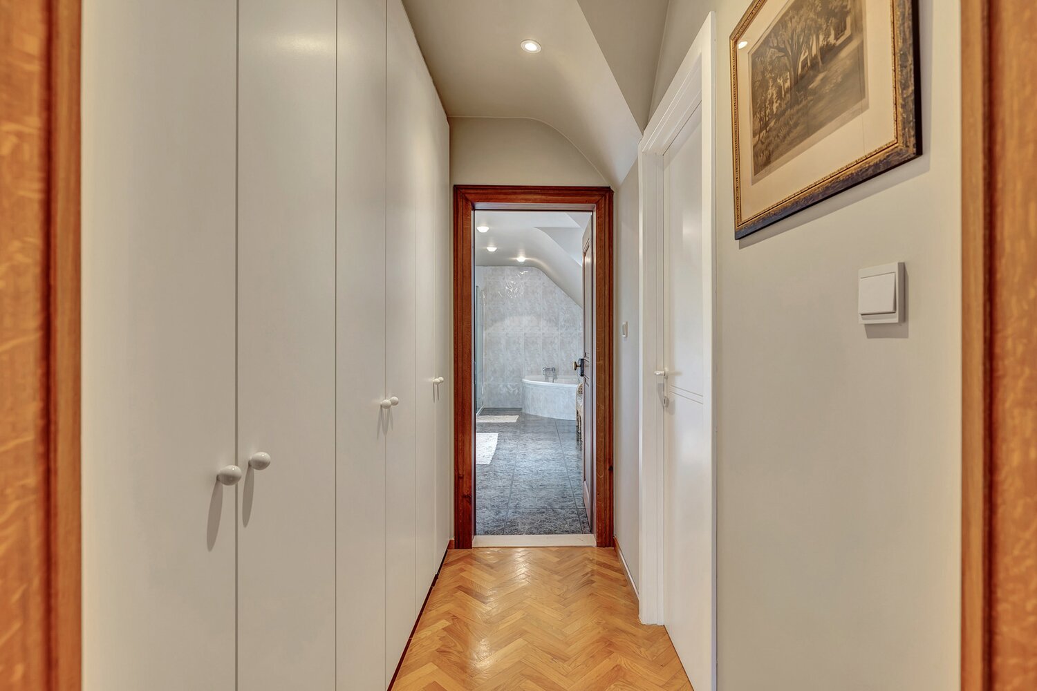 Voor meer info of een bezoek, bel 053 59 49 34 - Voor meer foto's, check www.topo-immo.be - Op een prachtige, groene ligging in Lennik bevindt zich deze hoogwaardig afgewerkte villa. De locatie vormt meteen de eerste troef: midden in het groen, in een rustige straat en toch op slechts enkele minuten van het centrum van Lennik, waar u alle nodige faciliteiten (winkels, openbaar vervoer, scholen, …) terugvindt. De woning werd gebouwd in 1993 en doorheen de jaren perfect onderhouden. Ze is volledig opgetrokken in beton en beschikt over een onderkeldering van ca. 60 m², twee inpandige garages en drie buitenstaanplaatsen. De totale bewoonbare oppervlakte bedraagt maar liefst ca. 550 m². We betreden de woning via de stijlvolle inkomhal die toegang biedt tot de verschillende ruimtes. Het gelijkvloers omvat een ruime, lichtrijke woonkamer met aansluitend de vernieuwde, hyper uitgeruste keuken met praktische berging. Daarnaast zijn er de garages en een bureauruimte van 30 m², die tevens kan ingericht worden als vijfde slaapkamer. Op de eerste verdieping bevinden zich vier royale slaapkamers. De masterbedroom (ca. 45 m²) beschikt over een dressing en een eigen badkamer. Een tweede slaapkamer werd voorzien van aansluitingen voor een douchekamer (nog te installeren). De derde en vierde slaapkamer delen een gemeenschappelijke badkamer. De zolder, bereikbaar via een vaste trap, biedt extra opbergruimte. Buiten geniet u van een volledig aangelegde, zuidgerichte tuin met terras, waar rust en privacy centraal staan en u een prachtig uitzicht heeft op de omliggende natuur. Bovendien werd recent een kwalitatief tuinhuis in hoogwaardig materiaal geplaatst. Kortom: deze villa combineert ruimte, comfort en een uitstekende ligging midden in het groen, vlak bij het centrum van Lennik. Gunstig EPC (B) - Prachtige ligging - Rustige straat - Betonnen constructie - Instapklaar - Goed onderhouden - CV op gas - Dubbele beglazing - Hoogwaardige materialen