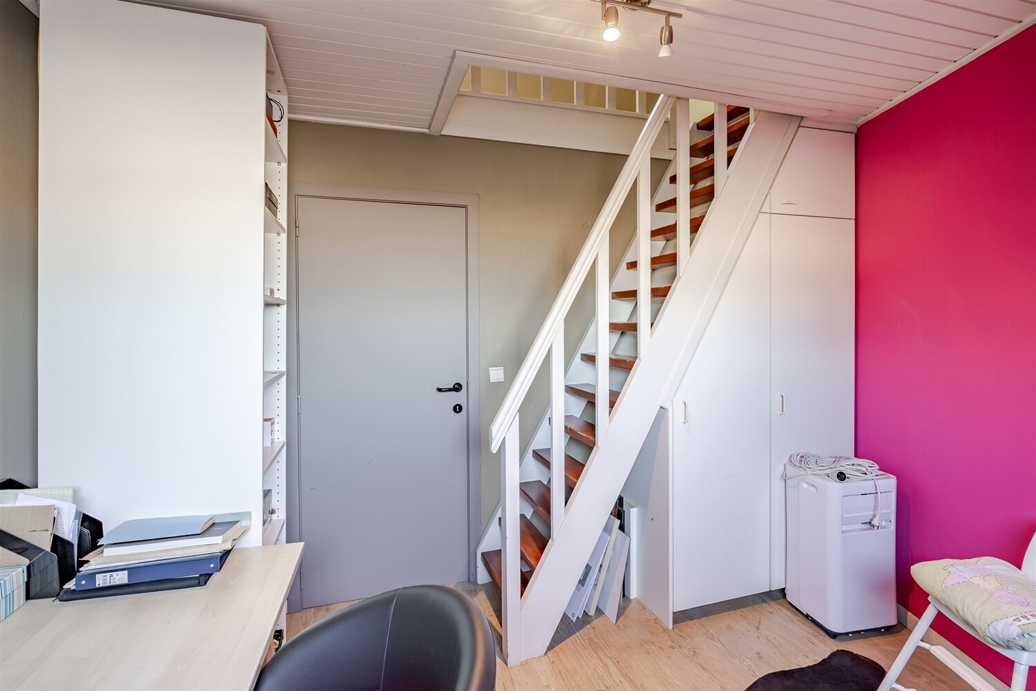 Op de tweede verdieping vinden we 3 slaapkamers met ingemaakte kasten, een bureau, een badkamer en toilet. Op de derde verdieping vinden we een zolderkamer.