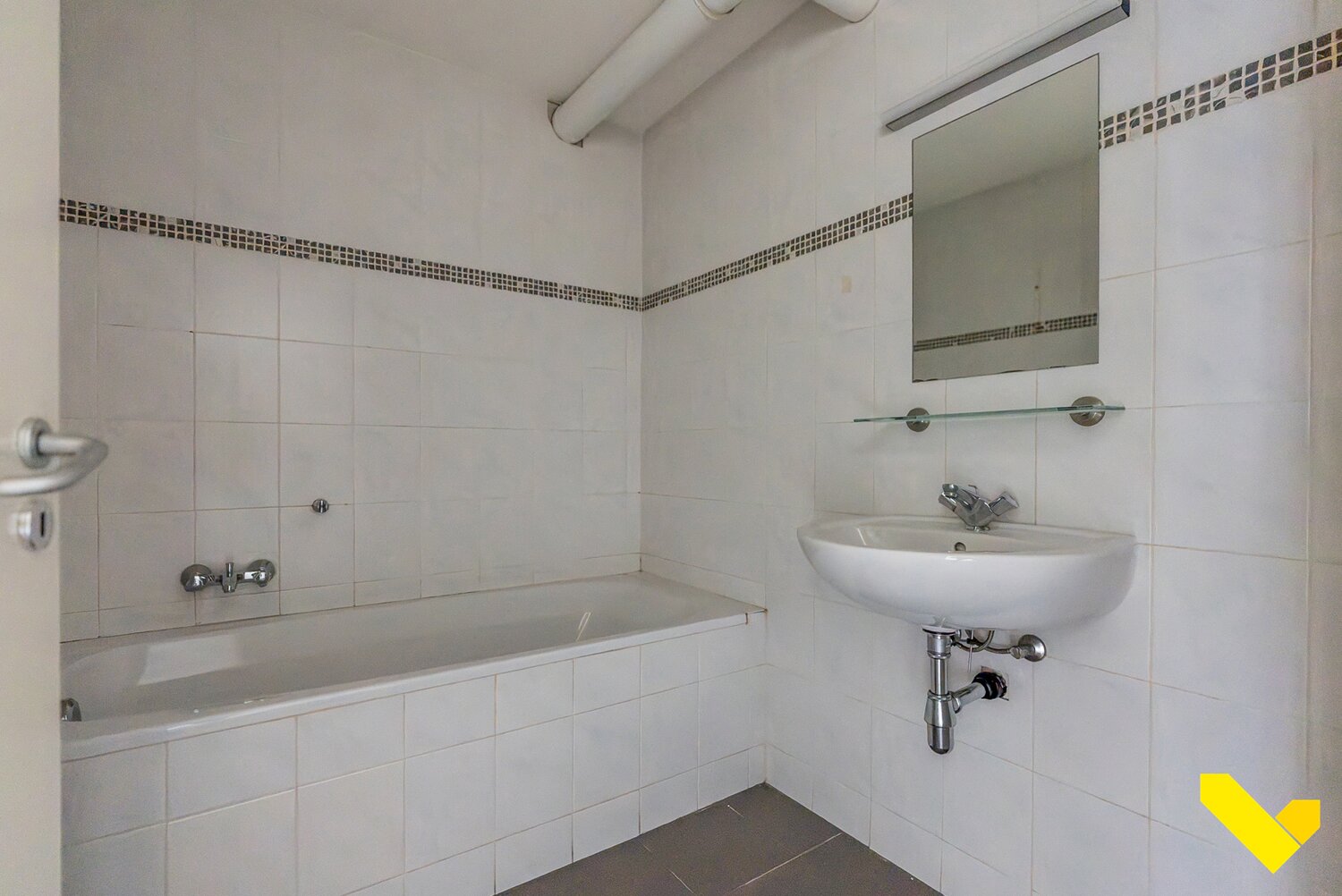 De badkamer beschikt over een enkele lavabo en is voorzien van bad/douche combinatie.