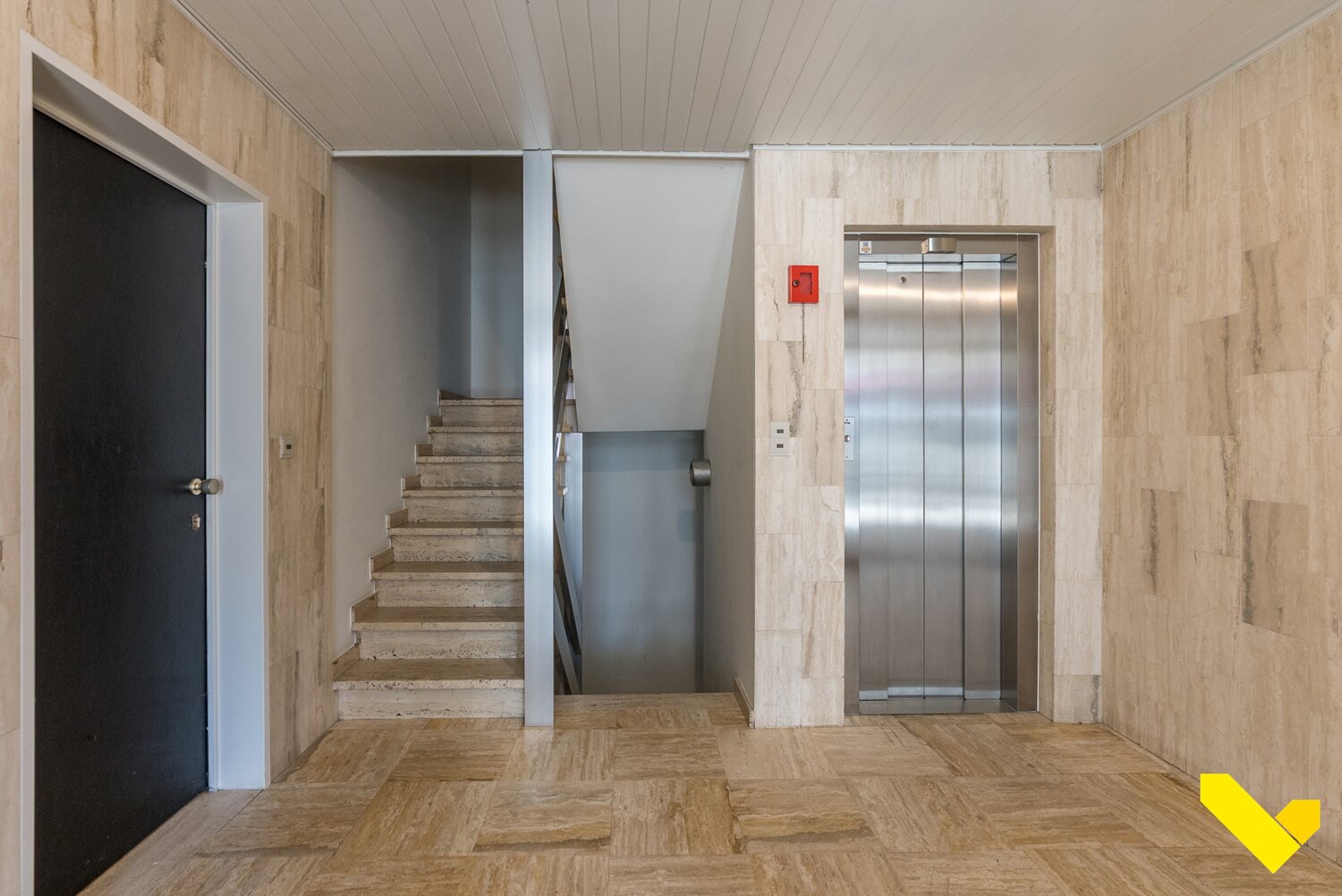 De verdieping is bereikbaar met de reeds gerenoveerde lift of trap.