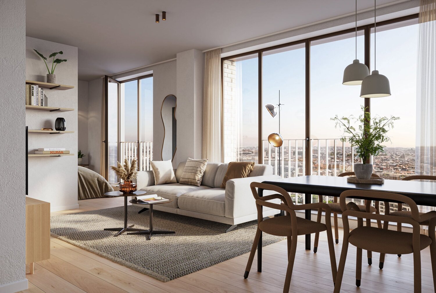 De interieurs van de Matisse-appartementen zijn ontworpen om optimaal comfort en een ongeëvenaarde levenskwaliteit te bieden. Grote raampartijen zorgen voor uitzonderlijk natuurlijk licht en bieden een prachtig uitzicht over de stad.