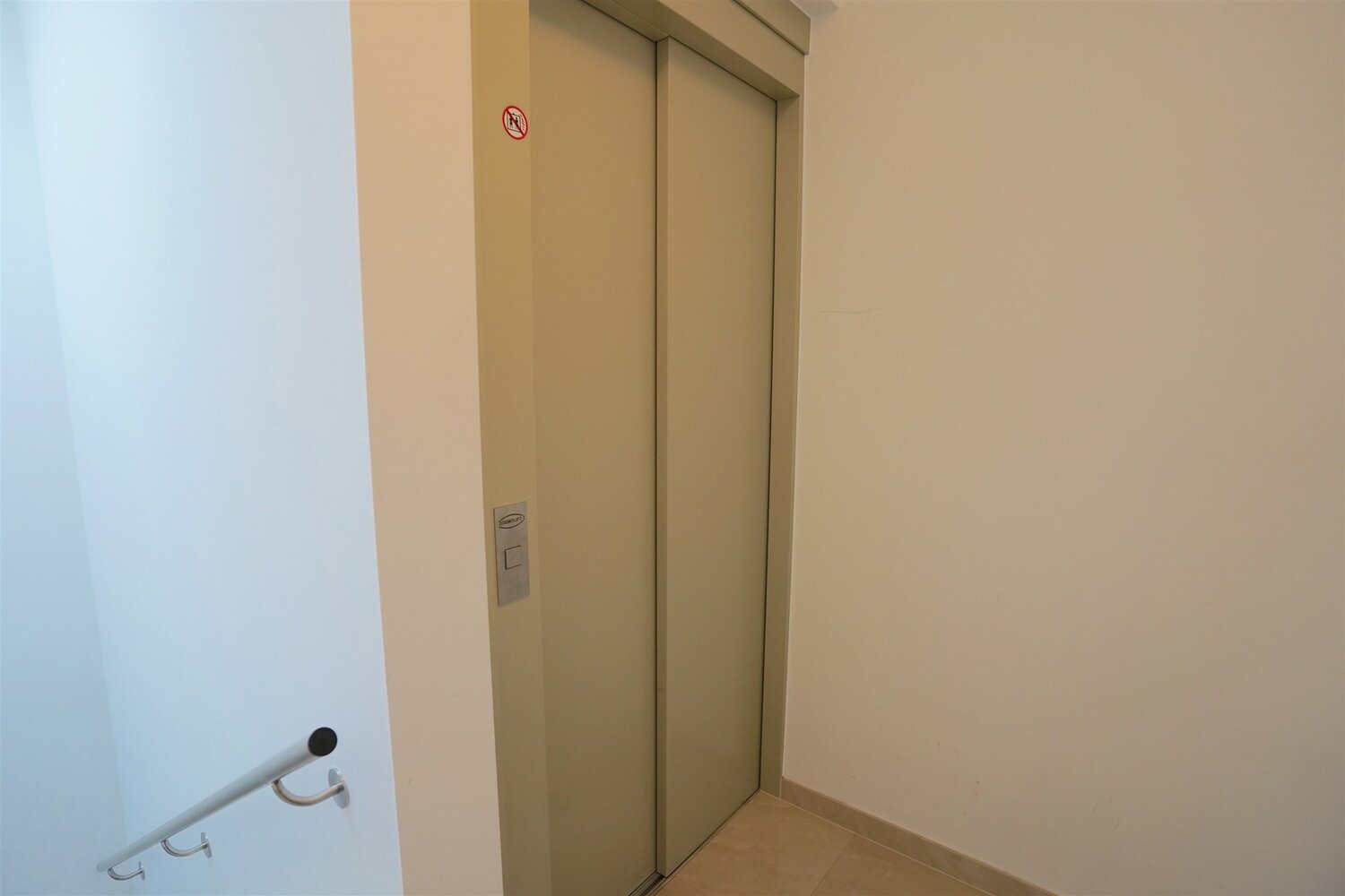 Bereikbaar met lift: inkomhal met gastentoilet - volledige rolstoeltoegankelijk en voorzien van videofoon - Een lichte living dankzij grote panoramische ramen.