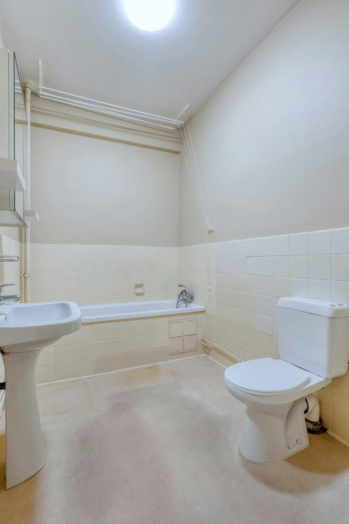 - badkamer met lavabo, bad en aansluitingen voor de wasmachine