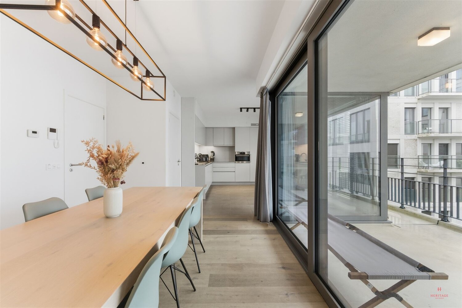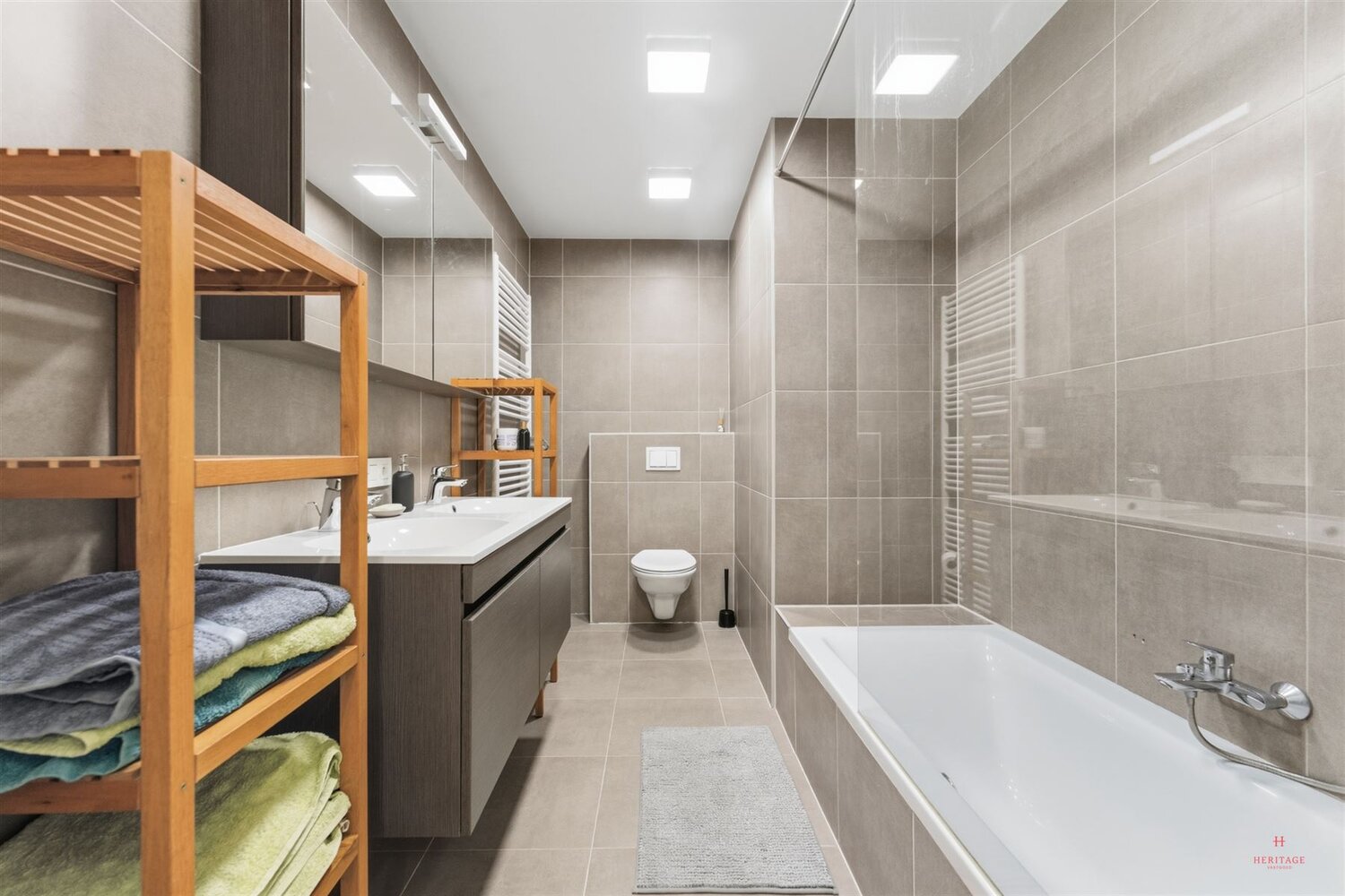 Verder beschikt het appartement over twee comfortabele slaapkamers, een stijlvolle badkamer, een gastentoilet en twee praktische bergruimtes. Alles is afgewerkt met oog voor detail en duurzaamheid. Eén autostaanplaats is inbegrepen, met mogelijkheid tot aankoop van een tweede.