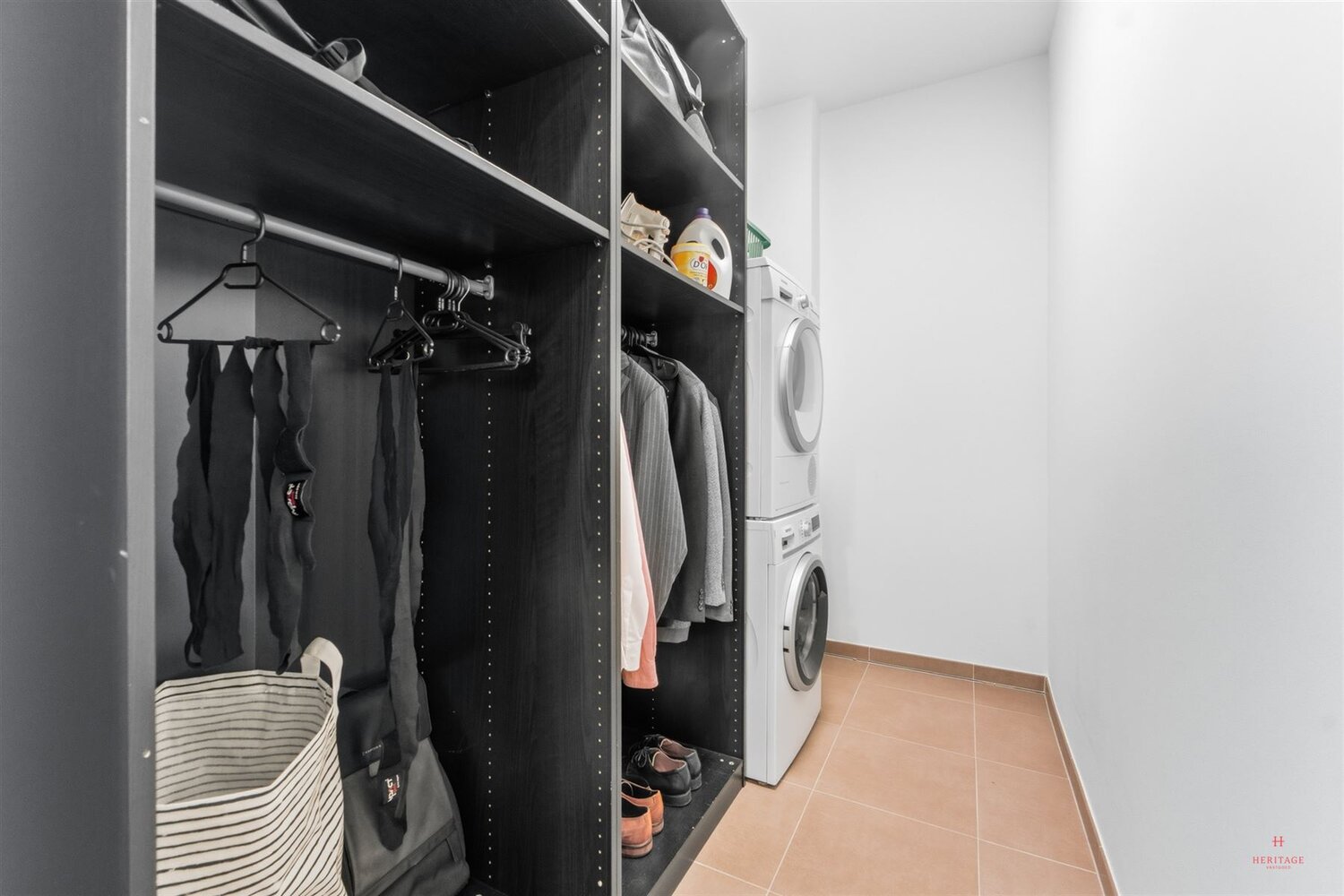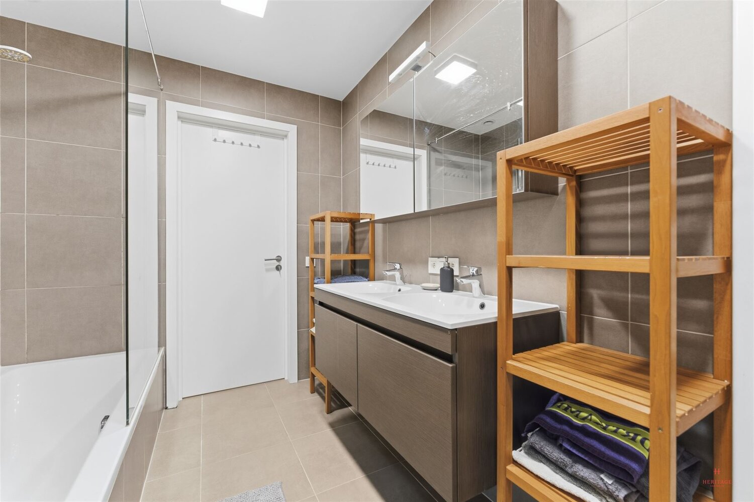 Via de inkomhal komt u in de gezellige leefruimte met grote ramen die zorgen voor veel natuurlijk licht. De open keuken sluit mooi aan op de eet- en zithoek en is afgewerkt met kwaliteitsvolle materialen en een tijdloos design. Vanuit de leefruimte heeft u toegang tot het ruime terras van 15 m², een heerlijke plek om te ontspannen.
