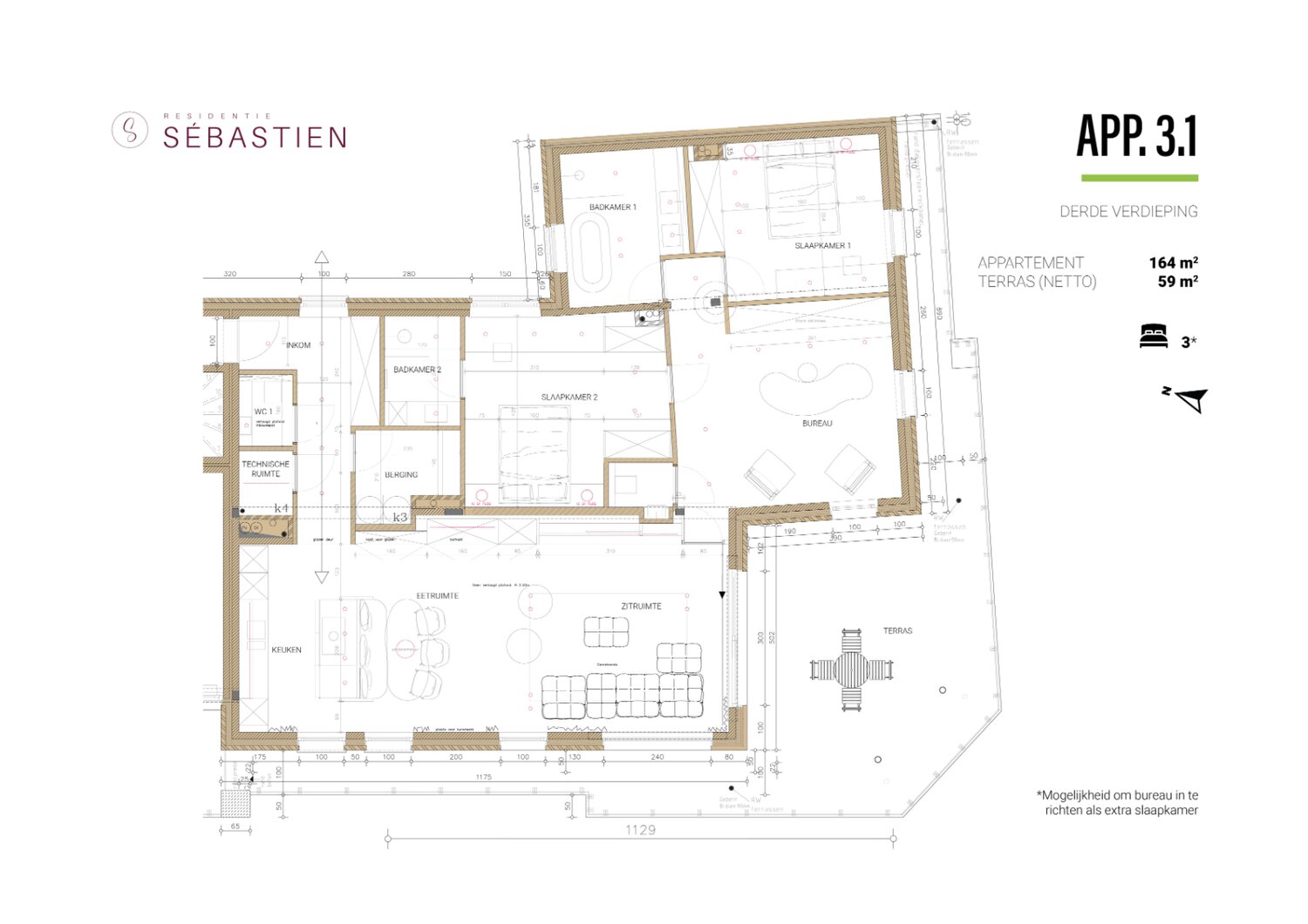Residentie Sebastien is een kleinschalig én zeer energiezuinig nieuwbouwproject bestaande uit 9 appartementen, diverse ondergrondse en bovengrondse garages (waarvan enkele zeer ruime dubbele garages) en één kantoorruimte. Het resterend aanbod op heden betreft 3 ruime en lichtrijke drieslaapkamer appartementen, gelegen op een unieke en centrale ligging met zicht op de markt van Staden.