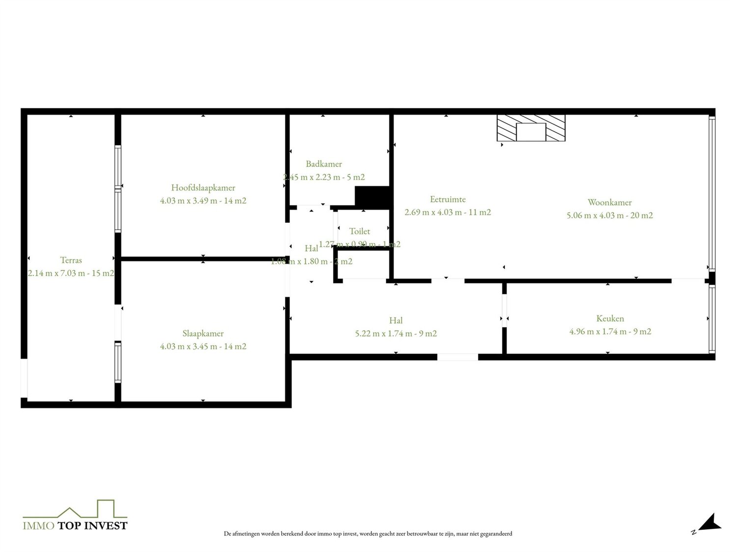 + Privaat terras aan de achterzijde van het appartement