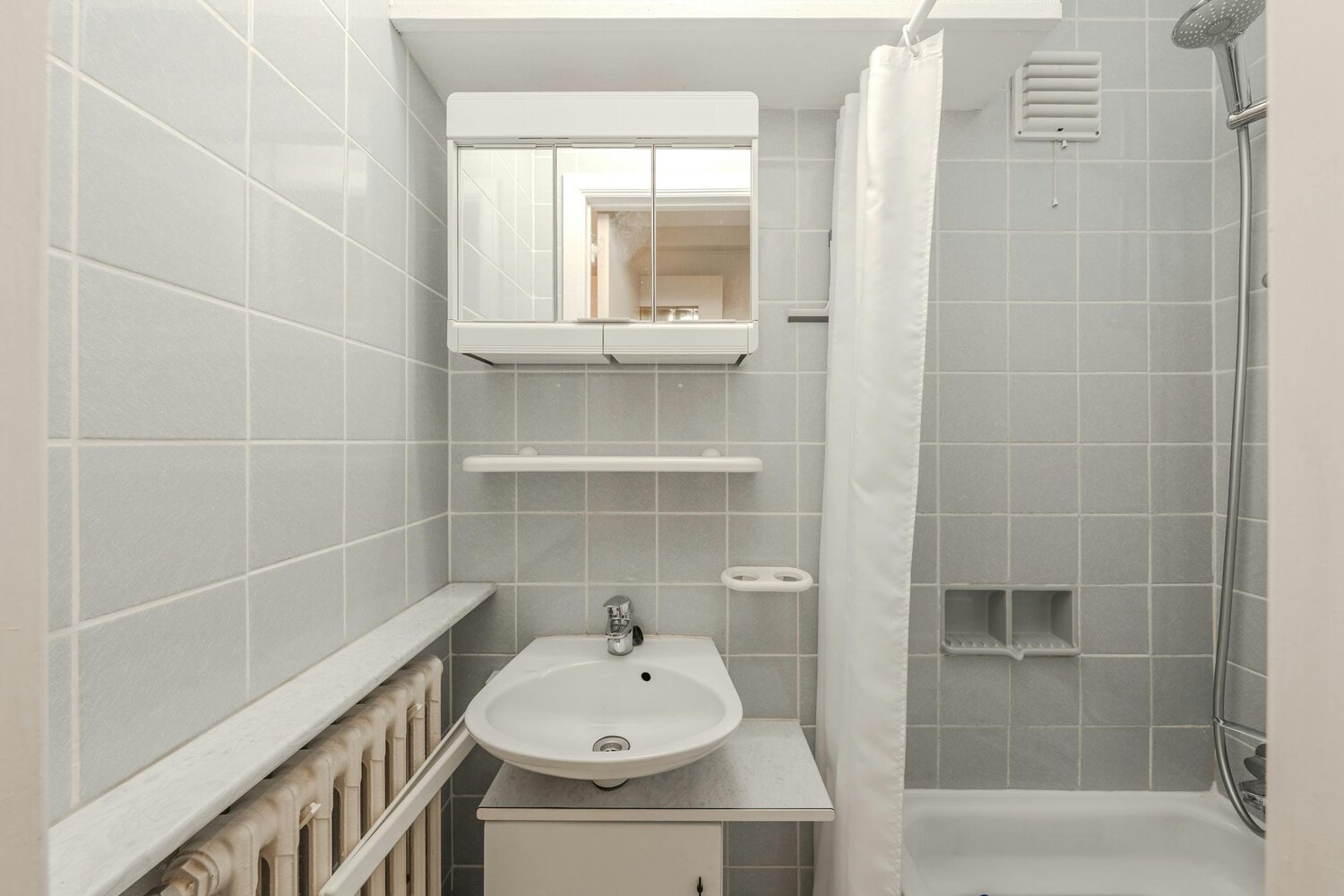 - Badkamer met douche en enkele lavabo