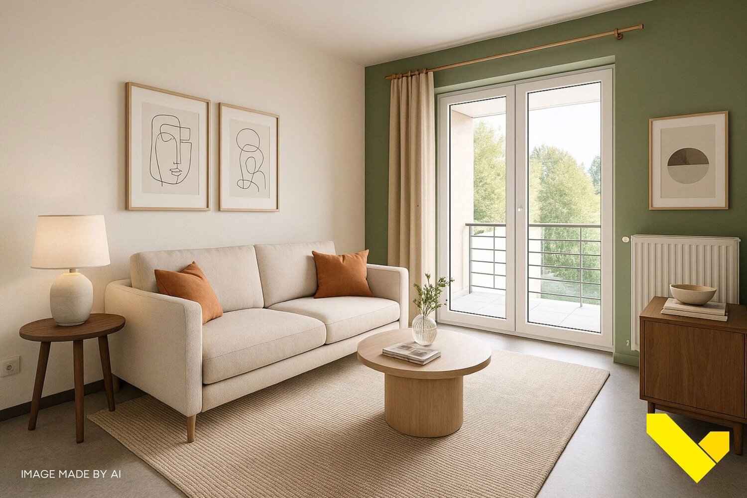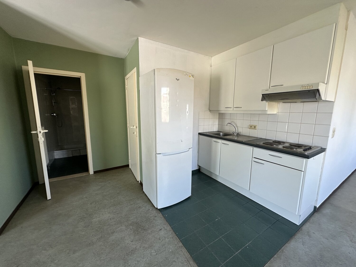 De leef- en slaapruimte is ruim en geniet van veel lichtinval door de grote raampartijen. De open keuken is geïnstalleerd met de nodige toestellen. Het terras bevindt zich aan de achterzijde en tevens ook de rustige kant.