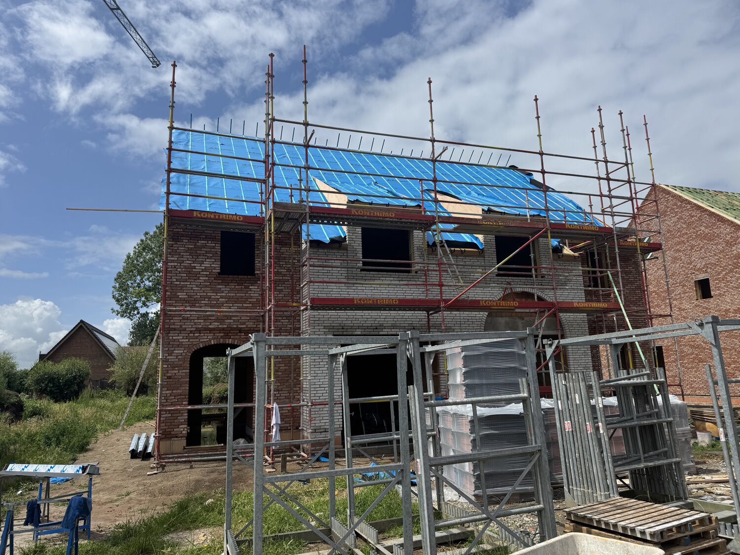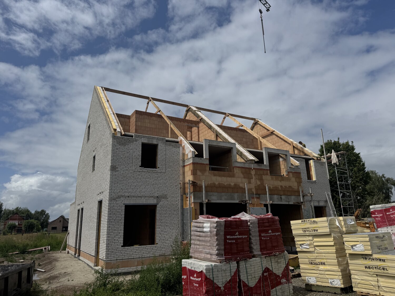 deze prachtige woning lot 8 is bijna klaar ! Deze knappe verkaveling bestaat uit 10 nieuwbouw half open bebouwingen in een tijdloze stijl op een mooi stukje grond (427 m2). De woningen hebben volgende indeling: inkomhal, ruime leefruimte met grote raampartijen naar buiten toe, open keuken volledig zelf te kiezen, berging, inpandige garage. Op de verdieping zijn er 3 slaapkamers en een badkamer voorzien van dubbele lavabo, ligbad, inloopdouche en toilet. Vaste trap naar de zolder, welke ingericht kan worden als 4e slaapkamer, technische ruimte wordt daar eveneens voorzien. Zuid gerichte tuinen, waarvan oprit, afsluiting, terras en tuin en zelfs het tuinhuis volledig wordt voorzien ! Extra's: overal vloerverwarming en vloerkoeling met warmtepomp, 8 zonnepanelen, verluchtingssysteem D. oplevering zomer 2026.