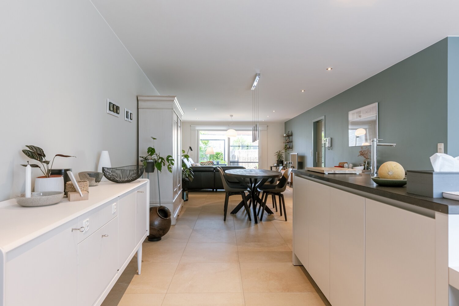 - Grote open leefruimte met aansluitende keuken en toegang tot terras en tuin