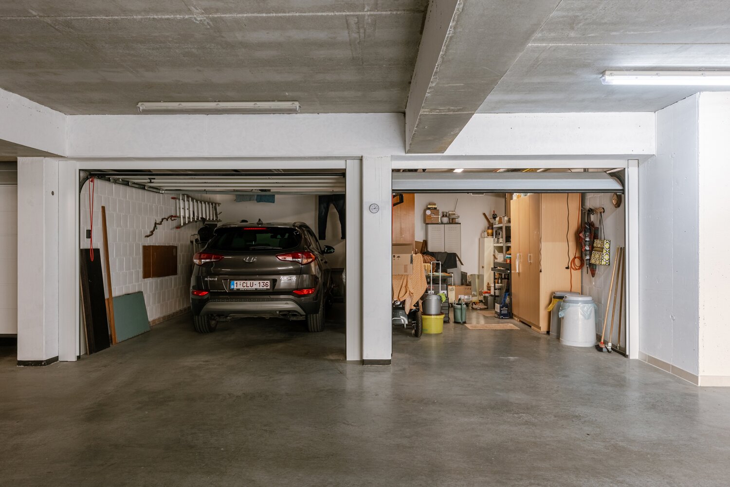 Extra troef: mogelijkheid tot aankoop van twee naast elkaar gelegen garages, samen goed voor zeer ruime bergruimte.