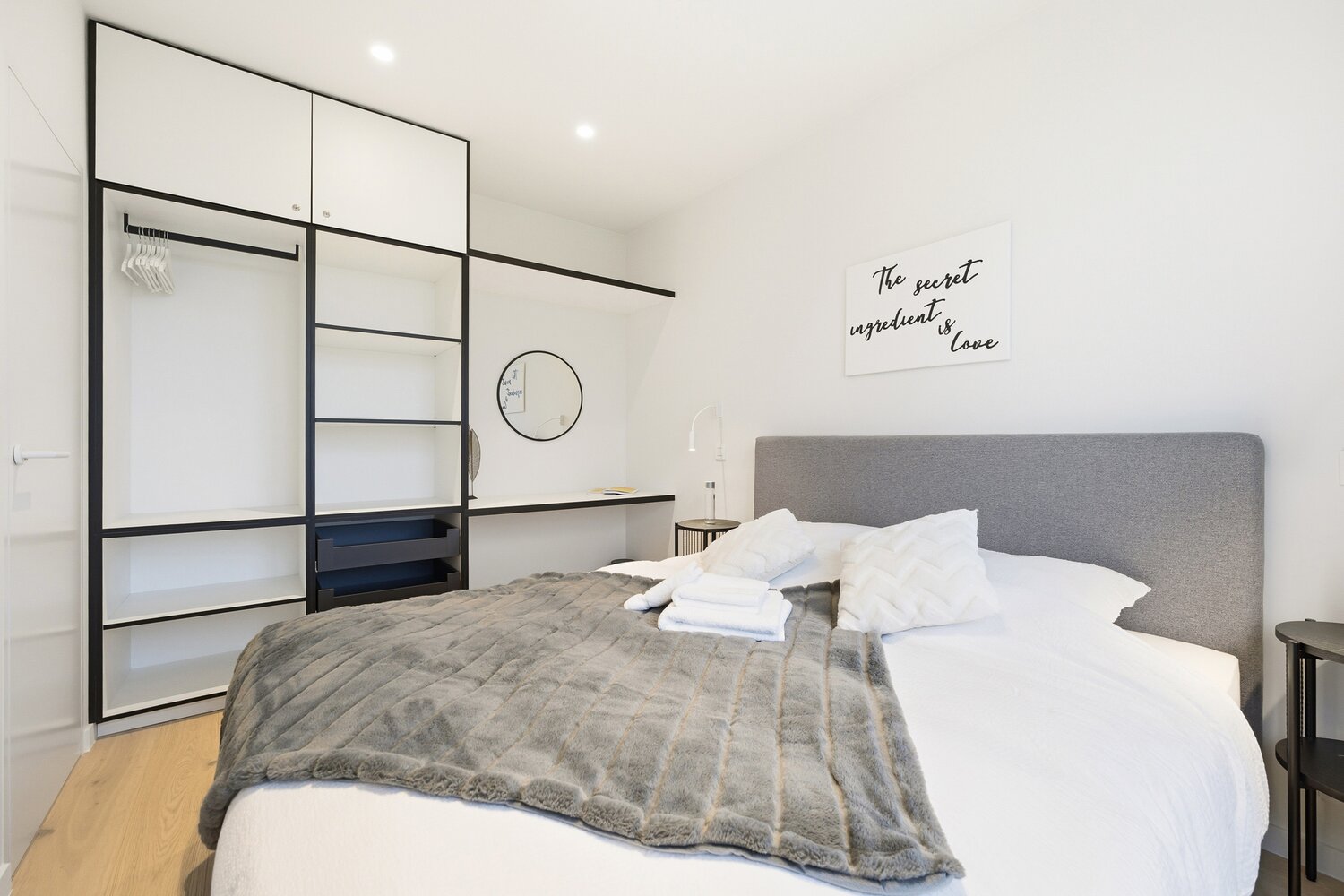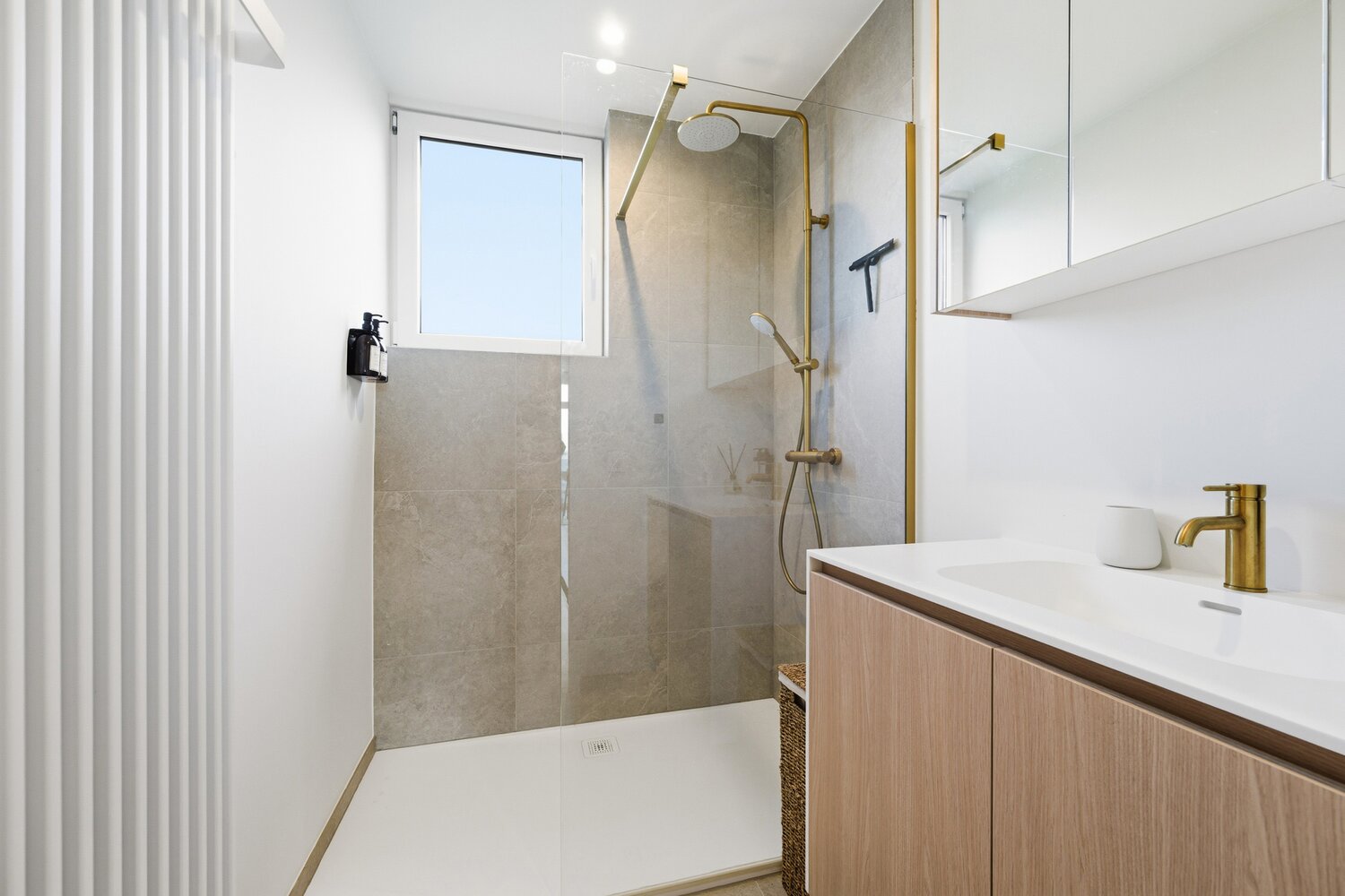 Beide slaapkamers zijn ruim en voorzien van ingemaakte kasten, wat zorgt voor voldoende opbergruimte zonder het ruimtegevoel te verliezen. De badkamer werd smaakvol vernieuwd en beschikt over een moderne inloopdouche. Daarnaast is er een afzonderlijk toilet.