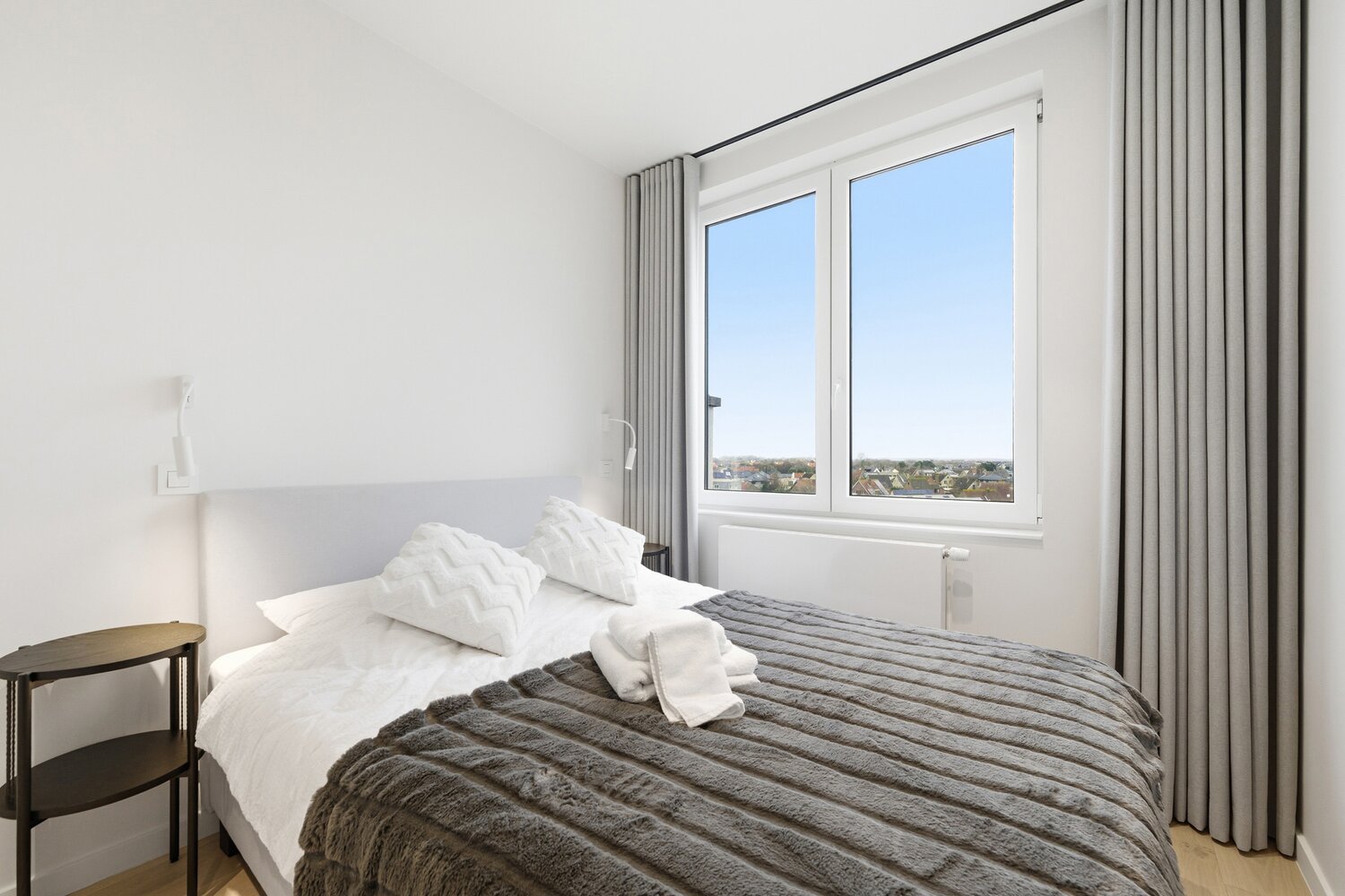 Met een bewoonbare oppervlakte van 73 m² is het appartement ingericht als een aangenaam doorzonappartement, met veel natuurlijke lichtinval langs beide zijden. Vooraan geniet u van open zichten op zee en duinen, terwijl de slaapkamers achteraan in alle rust gelegen zijn. Het terras is een absolute troef en biedt een fenomenaal uitzicht.