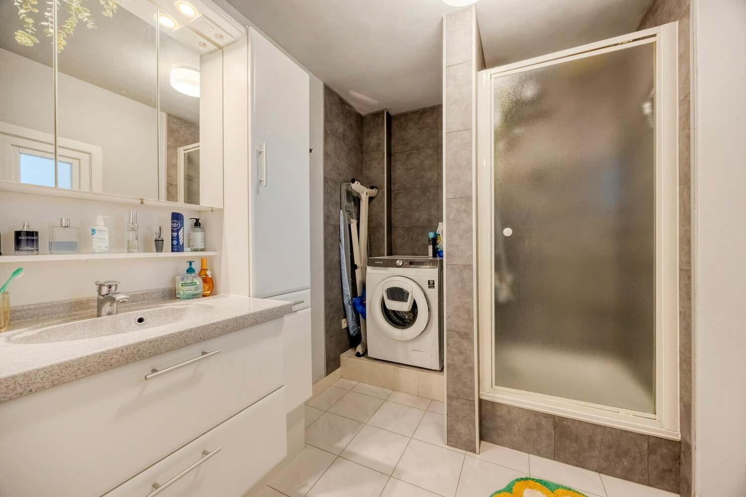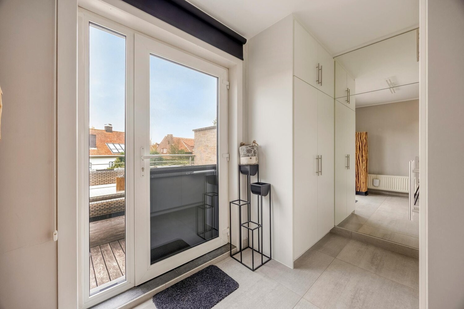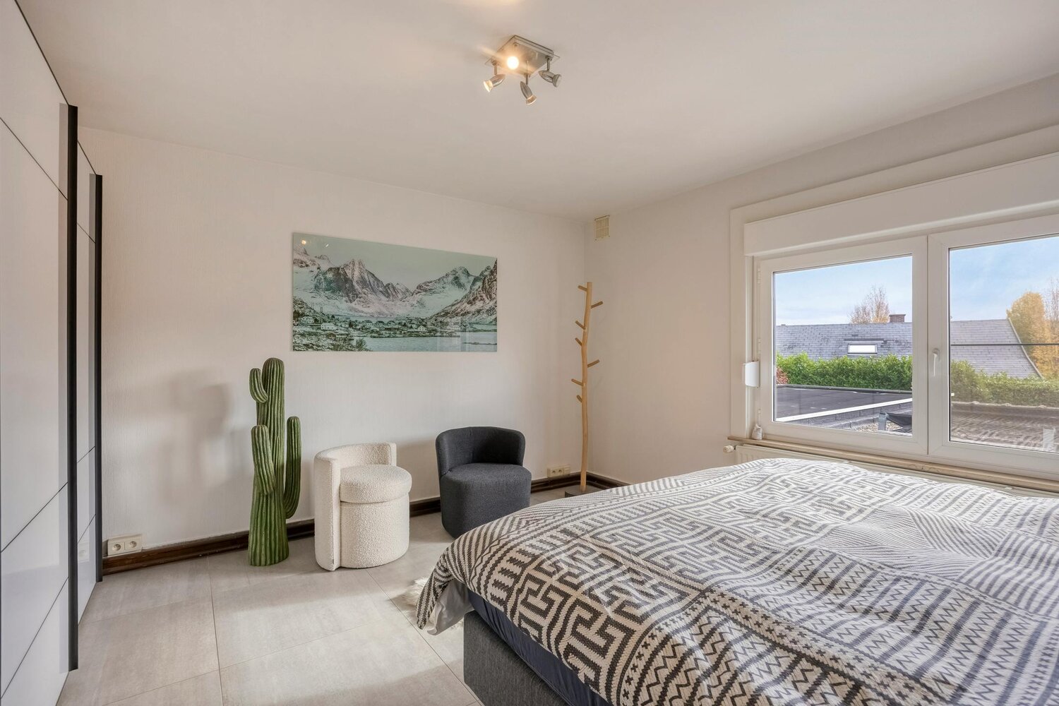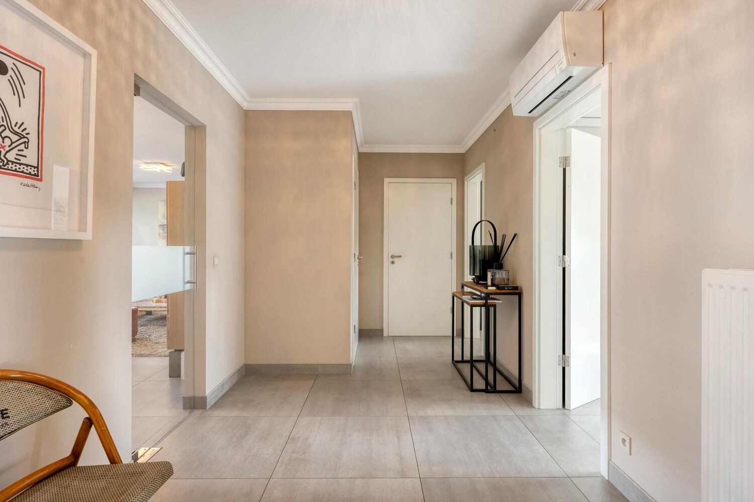 Eerste Verdiep (150 m²): Een luxueus gerenoveerd appartement met 3 slaapkamers, badkamer, ingemaakte kasten en een fenomenaal zonneterras van 12 m².