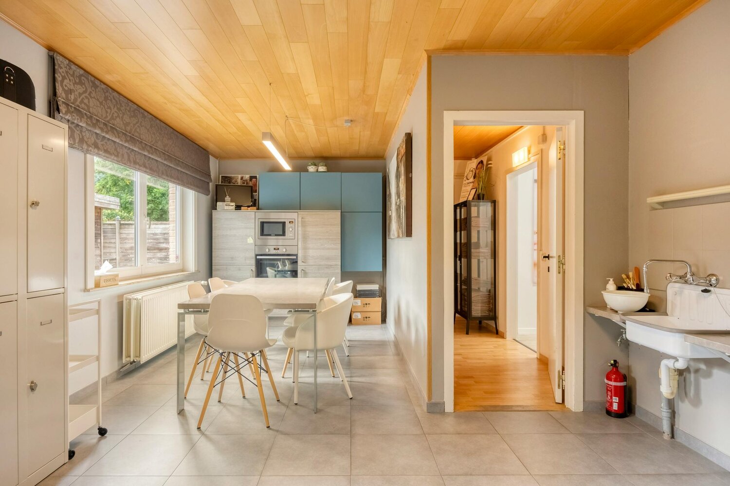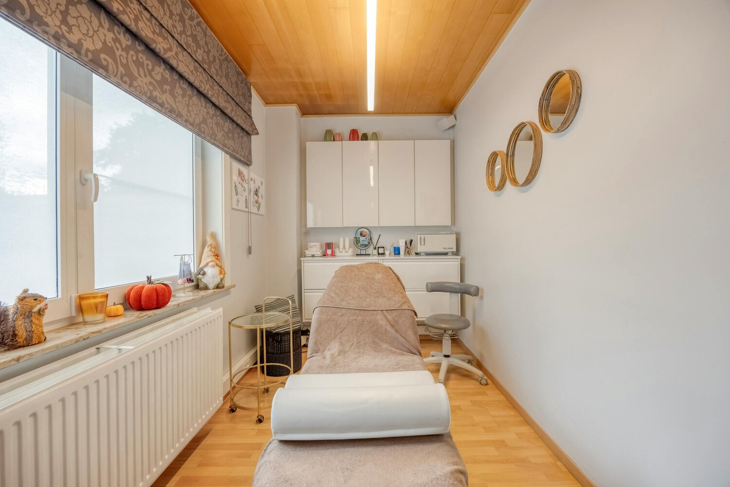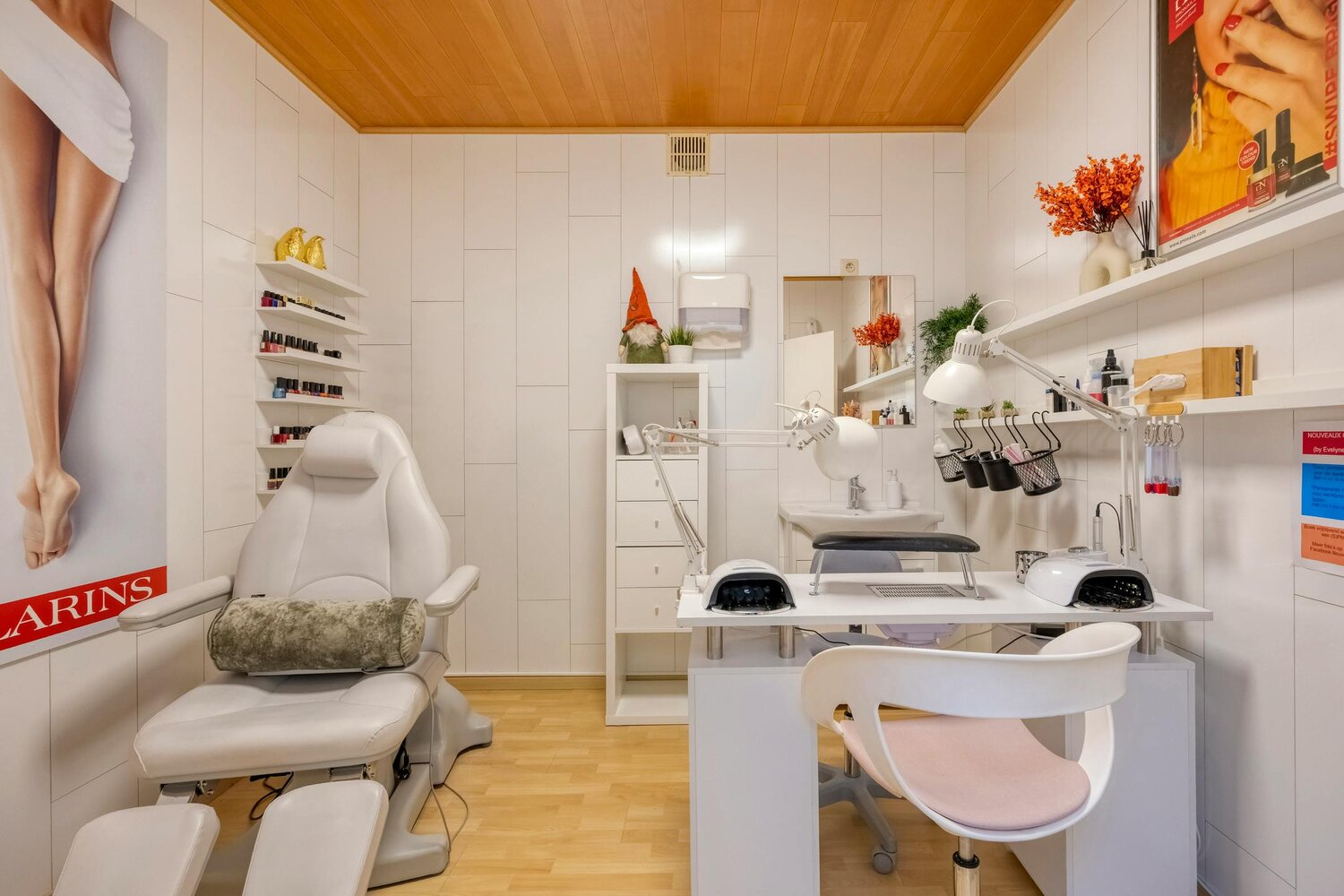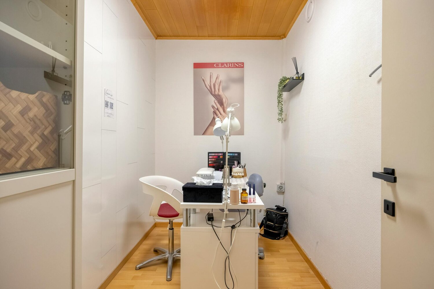 Het handelspand (228m²): Een lichtrijke winkelruimte met grote etalage, volledig gerenoveerd in 2017. Ideaal voor retail, een vrij beroep of praktijkruimte. Voordeel is dat er nu 6 aparte kabines zijn die voor veel doeleinden gebruikt kunnen worden.